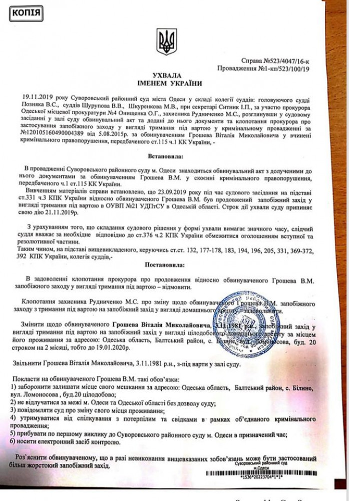 Дело о жестоком убийстве на Пересыпи: прокуратура обжалует освобождение подозреваемого из-под стражиПрокуратура готовит апелляционную жалобу на решение Суворовского райсуда Одессы о смягчении меры пресечения подозреваемому в убийстве и изнасиловании молодой женщины, совершенном четыре года назад на Пересыпи. Об этом «Думской» сообщили в пресс-службе прокуратуры Одесской области. По данным ведомства, жалоба будет передана в суд не позднее понедельника, 25 ноября. Сообщается также, что сейчас дело слушается с самого начала, так как один судья из коллегии ушел на пенсию, и сторона защиты ходатайствовала о повтором рассмотрении. О том, что судебное разбирательство всячески затягивается, говорят и родственники убитой. «За четыре года три или четыре раза менялись боковые судьи. Причины — увольнения судей. По закону при заходе нового судьи дело начинают рассматривать сначала. При этом каждый раз Грошев (подозреваемый Виталий Грошев, — Ред.) просил у судьи время ознакомиться с материалами дела, — рассказывает тетя погибшей, волонтер Наталия Карташева. — Похожая ситуация произошла три месяца назад. Очередная смена бокового судьи, рассмотрение с начала, удовлетворение просьбы Грошева на очередное ознакомление с материалами. При этом прокурор каждый раз показывает подпись под документами, что он уже ознакомился с материалами». Загадкой пока остаются и основание для изменения меры с содержания под стражей на домашний арест. В решении суда указано, что предыдущий раз меру продлевали 23 сентября, ее срок истекал 21 ноября. Но за два дня до этой даты суд отклонил ходатайство прокуратуры и постановил: освободить Грошева в зале суда. Родные жертвы высказали опасения, что фигурант сбежит, так как электронный браслет на него в день освобождения не надели (сказали, что браслетов просто нет), а дом, куда его отправили, находится недалеко от границы с непризнанной ПМР. Впрочем, пока этого не произошло. «Убийца находится по адресу, куда его отправил судья (проверили), все держат этот момент на контроле. Границу для него закрыли, браслет нашли, но опасность побега все еще есть, так как существуют дырки, — продолжает Наталия Карташева. — Что происходило в суде в день решения о выпуске под домашний арест. Прибыла на заседание женщина, которая сказала, что она мать, документов у нее не было. В этот момент Грошев выдал фразу: «Мы собрали все документы, которые сказала секретарь». Далее боковой судья попросил документы на дом, куда адвокат Грошева просила его отправить под домашний арест. Женщина, называющая себя матерью, ответила, что в селе не принято переоформлять дома. Услышав это все, судья Позняк выдает решение о выпуске на домашний арест. Ему наплевать, что есть вероятность побега, и что еще в 2015-м подозреваемый не приезжал по повесткам на допросы, полиция делала привод». Напомним, трагедия произошла в августе 2015 года. Обнаженное и обезглавленное тело 26-летней Анны было обнаружено на железнодорожных путях станции «Одесса-Сортировочная». В декабре того же года правоохранители сообщили о подозрении в совершении этого преступления уроженцу Балтского района Виталию Грошеву. Он признался, что хотел скрыть следы убийства, для чего положил тело жертвы под поезд. Экспертиза показала, что причиной смерти стало удушение. На теле обнаружена сперма Гроше