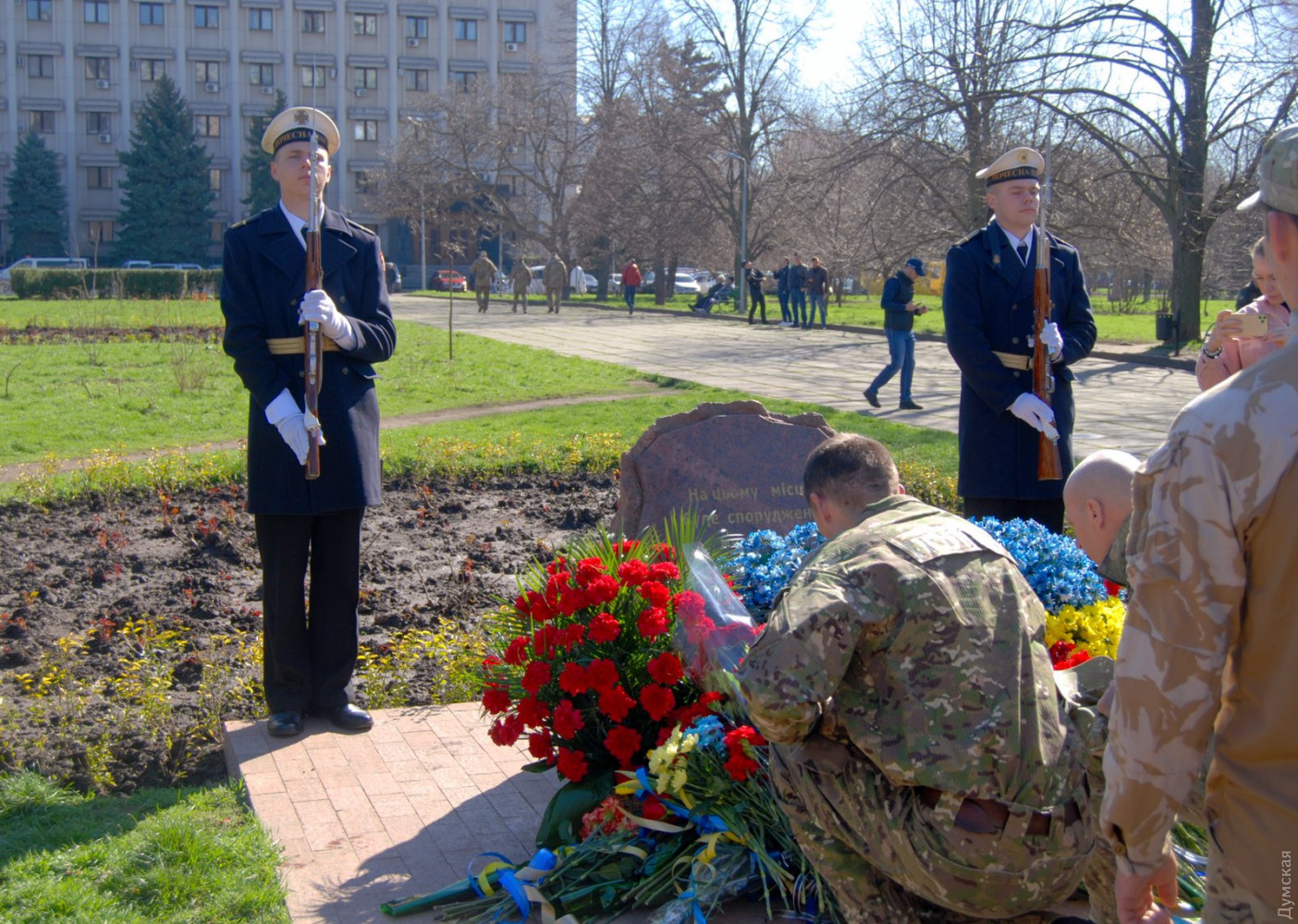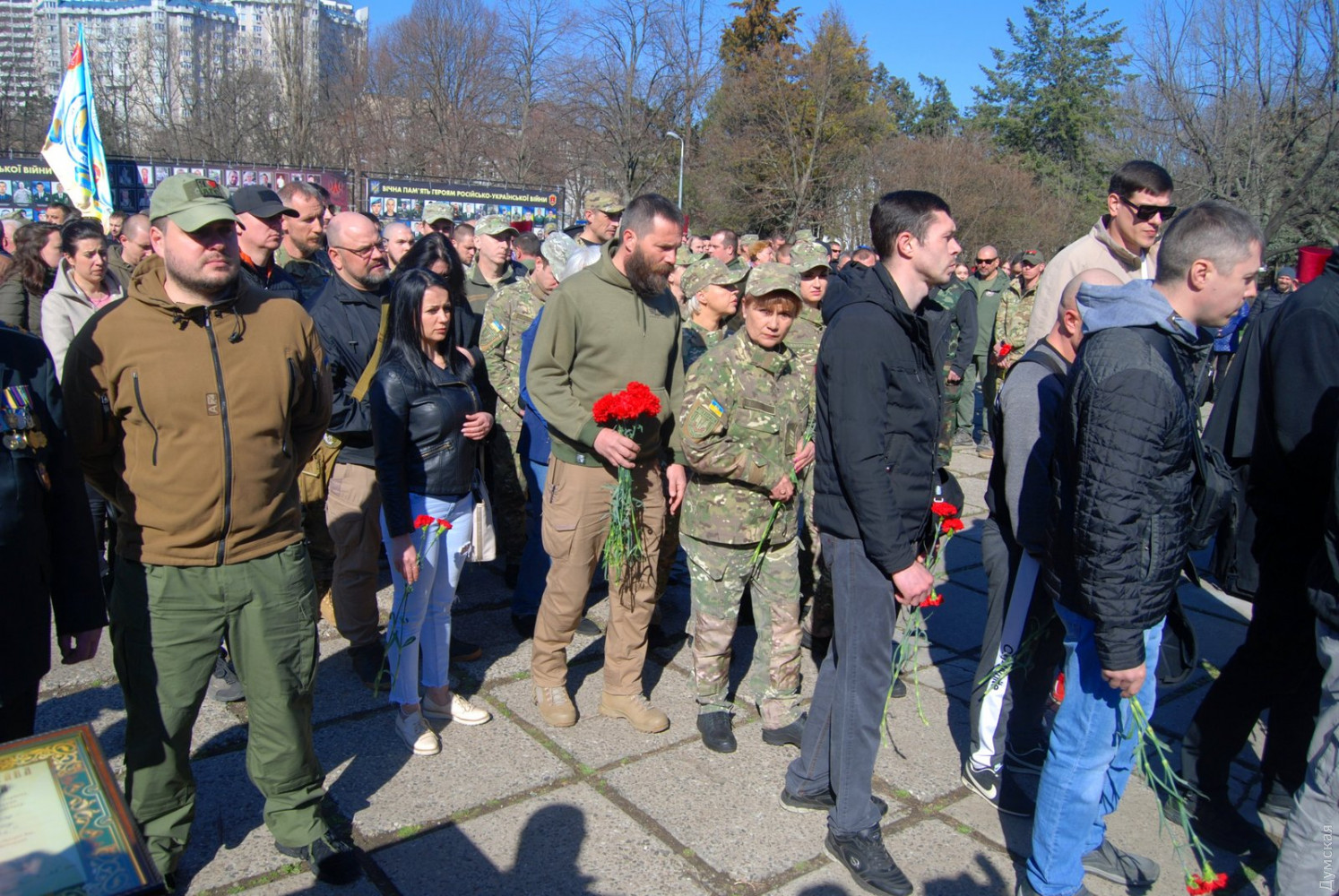 В Одессе празднование началось с возложения цветов к памятному знаку в сквере Небесной Сотни. В нем приняли участие представители армейского командования, городской и областной власти. Впрочем, это традиционное мероприятие не превратилось в сухую «казенщину» — возле здания областной администрации встретились боевые побратимы, добровольцы-участники АТО, волонтеры — все, кто считает этот день своим праздником.