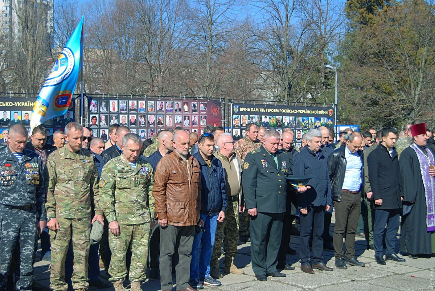 Официальная часть включала минуту молчания, исполнение гимна, вручение грамот и памятных наград. Епископ Православной церкви Украины отец Павел торжественно вручил благодарственные грамоты представителям добровольческих подразделений — батальона «Шторм», Добровольческого украинского корпуса «Правый сектор», 18-го батальона территориальной обороны, батальона «Айдар», батальона «Аррата», — а также Одесского филиала Украинского института национальной памяти.