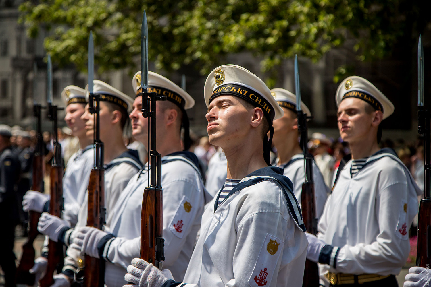 В синем костюме директор Службы безопасности Украины в Одесской обл. Довженко Александр Иванович. Рядом с ним военный — начальник Южного оперативного командования генерал-майор Олег Вишневский. За ним в черной форме командующий Военно-морскими силами Украины адмирал Игорь Александрович Воронченко.