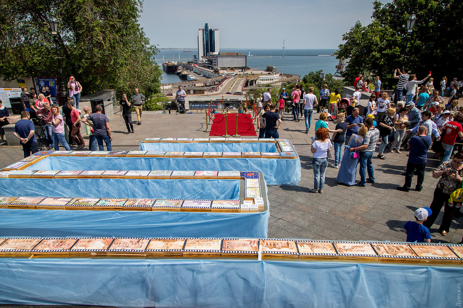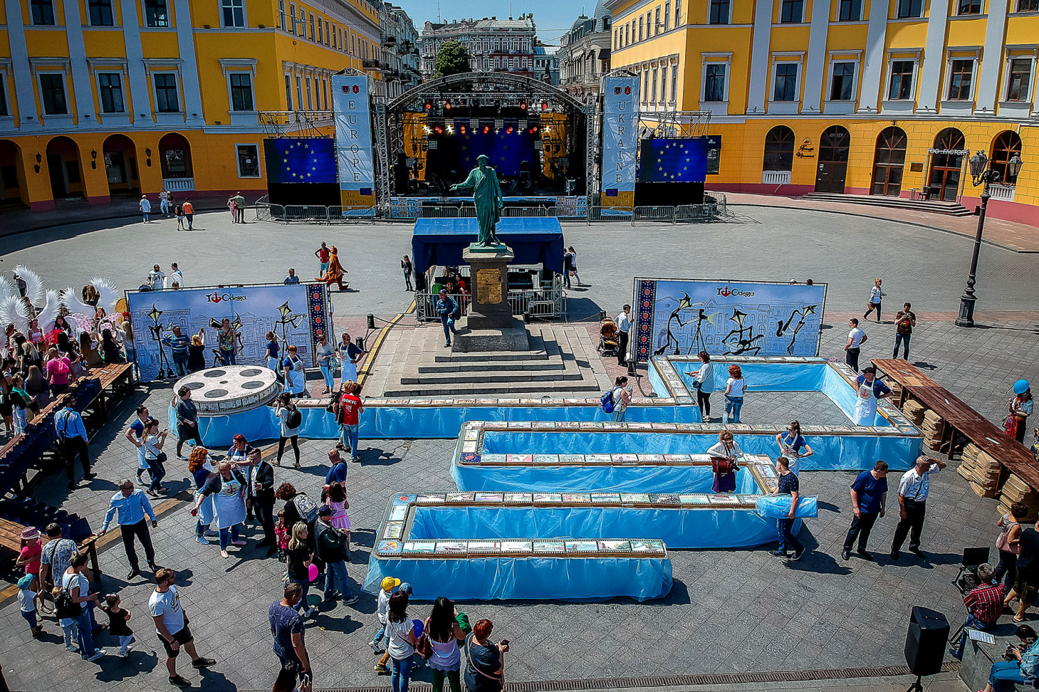 В честь Дня Европы и 100-летия Одесской киностудии возле памятника Дюку был разрезан огромный торт, созданный одесским кондитером Оксаной Бубликовой. Сто пряничных картин с изображениями одесских достопримечательностей были выполнены в виде кадров кинопленки, а сам 70-килограммовый торт — в виде катушки. Ее оформила известный одесский художник, автор проекта «Одесские фонари» Станислава Лисовская.