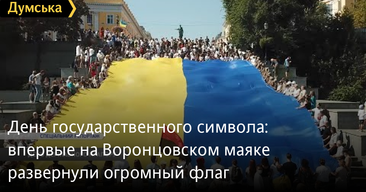 В честь дня государственного флага Потемкинскую лестницу накрыли сине-желтым полотнищем размером 29 метров. Кроме того, впервые, после восстановления Воронцовского маяка, там развернули огромный флаг.