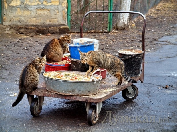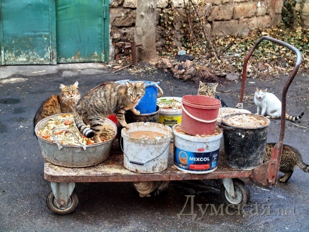 День мартовского кота в Одесском зоопарке: подарки для хищников, детские конкурсы и коты-воришки (Фоторепортаж)В Одесском зоопарке прошел праздник в честь дня мартовского кота. В этот кошачий праздник в одесском зоопарке выставили две необычные экспозиции. На одной из них представлены фотографии кошачьих в нашем зоопарке за последние три с лишком десятка лет. А вторая экспозиция — это кошачьи рисунки. «Кошка — одно из самых близких к человеку животных. А кошачьи — наиболее совершенные хищники в живой природе.» — говорит заместитель директора зоопарка Игорь Беляков. Для самых маленьких руководство зоопарка организовало конкурсы на знание диких кошек. Победители получили сувениры в виде различных представителей семейства кошачих. После этого маленькие гости зоопарка коллективно собрали пазлы с изображением тигра, за что и были награждены сладкими подарками. «Гвоздем» празднования стало вручение подарков хищникам — леопарду и львам. Сытые львы не обратили внимания на полосатые коробки, внутри которых спрятали мясо. А леопард моментально растеребил коробку и утащил ее в свое логово, оставив мясо нетронутым. Толпа детей подбадривала леопарда криками «МЯСО!!! МЯСО!!!» «Животные сытые, вот мяса и не сильно хотели. К тому же смущались от пристального внимания детей. А леопарду захотелось поиграть с новым и незнакомым предметом — коробкой» — пояснил Игорь Беляков. В ходе прогулки по зоопарку выяснилось, кто в нем на самом деле главный. Это - felis catus или кошка домашняя. Огромное количество котов и кошек с хозяйским видом можно встретить практически везде. Коты ошиваются на крыше вольера леопардов, в загоне диких кабанов, рядом с благородным оленем. Но больше всего их, естественно, рядом с кухней, где готовят еду для животных. Корреспондент Думской проследил, как стая котов и кошек буквально оккупировала тачку, на которой сотрудницы зоопарка развозят ведра с баландой для животных. Хвостатых-полосатых не смущало ничего, они нагло воровали еду, предназначенную для питомцев зоопарка. Справка: Традиция отмечать кошачий день в России и Украине сложилась стихийно в последние пару десятков лет. Считается, что это связано с тем, что именно весной кошки и, особенно, коты активизируются после долгой и холодной зимы. Их активность становится очень хорошо видно днем и слышно ночью. В других странах кошачий день не совпадает с нашим — «ближе» всего к нам Польша (17 февраля) и Япония (22 февраля). А в США день кота отмечают 29 октября. Ну а международный день кошек празднуют летом — 8 августа. Фото — Александр Вельможко СМЕРТЬ РОСІЙСЬКИМ ОКУПАНТАМ! Помітили помилку? Виділяйте слова з помилкою та натискайте control-enter |