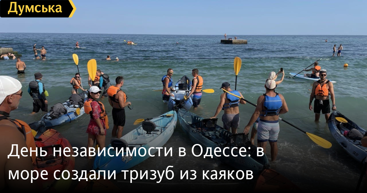 Герб Украины изобразили сегодня одесские каякеры в море на 14-й станции Большого Фонтана в Одессе. Тризуб сформировало тридцать лодок — по числу лет восстановленной независимости, передает корреспондент «Думской». Инициировал акцию волонтер и организатор каякинг-клуба Александр Кушнир. Идея возникла спонтанно — вчера в честь Дня государственного флага активисты растянули в море сине-желтый прапор, а вот сегодня у них получился тризуб. Чтобы воплотить идею, Кушнир кинул клич в соцсетях — и на пляже собралось достаточно людей с лодками, чтобы вместе выйти в море и сделать герб. Все были в спасательных жилетах и прошли первоначальный инструктаж. А что получилось — смотрите фото и видео. СМЕРТЬ РОССИЙСКИМ ОККУПАНТАМ! Заметили ошибку? Выделяйте слова с ошибкой и нажимайте control-enter |
