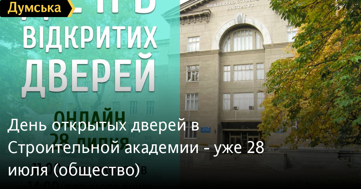Одесская государственная академия строительства и архитектуры приглашает на День открытых дверей. Знакомство с ведущим строительным вузом страны пройдет в формате онлайн 28 июля. «В рамках мероприятия можно будет зарегистрировать электронный кабинет абитуриента, узнать условия приему в академию и пройти творческий конкурс», — отмечают организаторы. Зарегистрироваться на День открытых дверей можно по ссылке: https://forms.gle/FzHQz8HQbX2rNsJx7 Вход на видеоконсультацию для школьников: https://meet.google.com/ckg-uvxz-ino