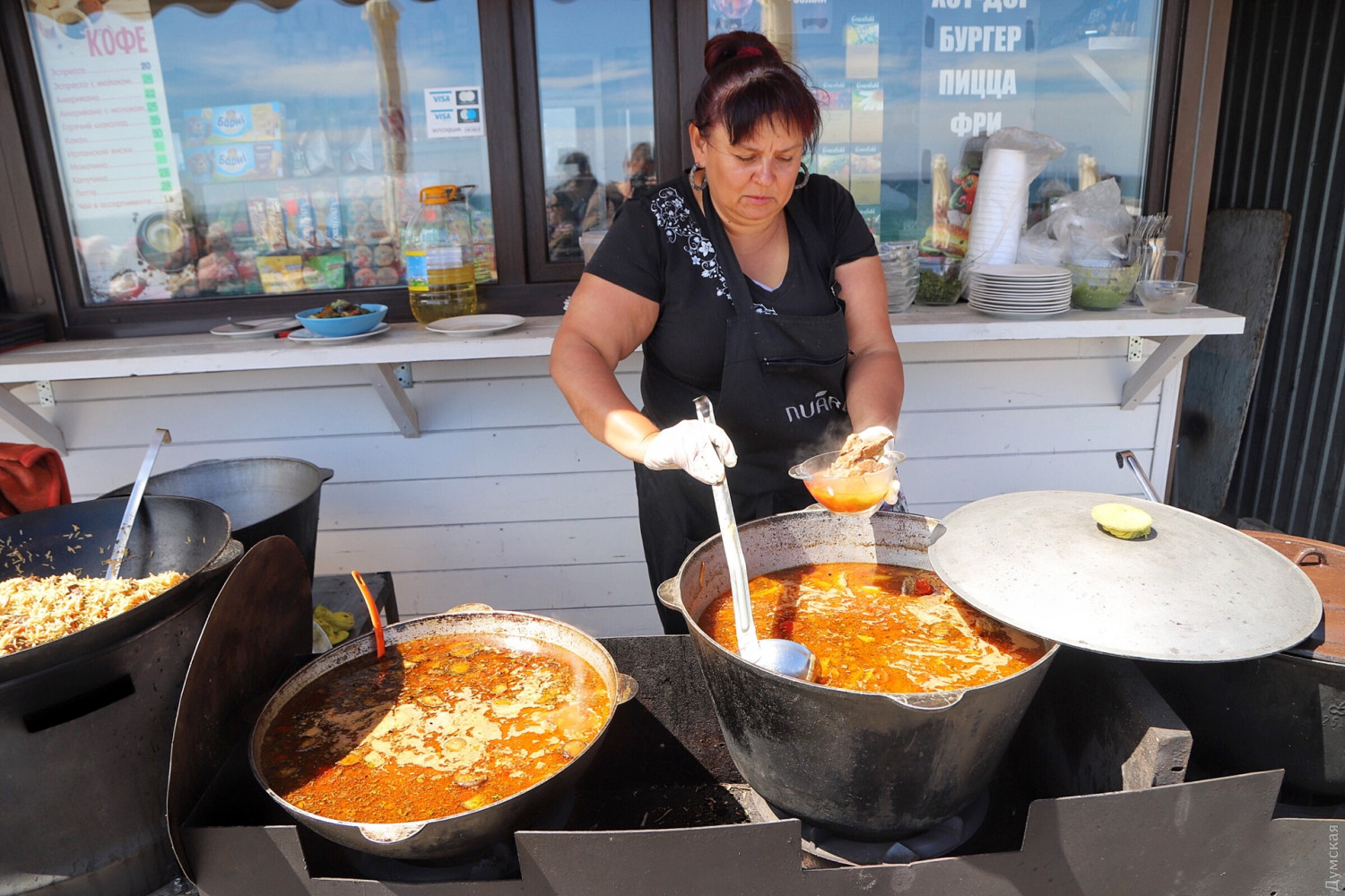 Зато приморские кафешки и их летние площадки забиты. Люди явно устали стоять у мангала и просто хотят отдохнуть, слегка перекусив и даже выпив. Предприниматели с удовольствием удовлетворяют пожелания клиентов.