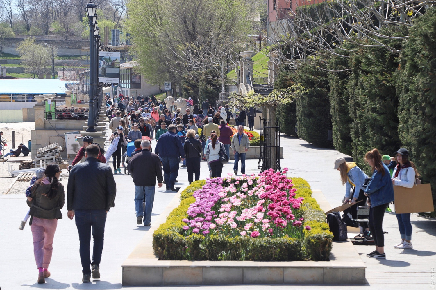 Корреспондент «Думской» прогулялся сегодня утром по Трассе здоровья и понаблюдал, как одесситы отмечают День солидарности трудящихся на приморских склонах.