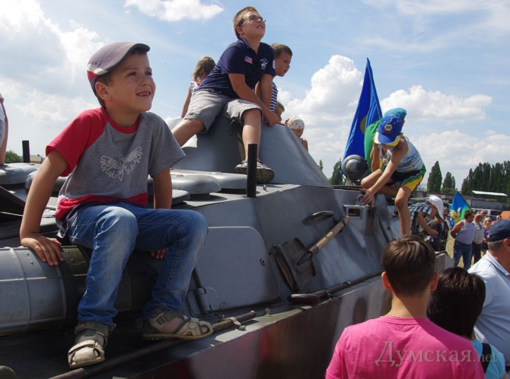 Расплескалась синева! Второе августа – один из немногих праздников, которые общественно признаются на всем постсоветском пространстве, он стоит в одном ряду с Новым годом, Восьмым марта, 23-м февраля… Есть еще, конечно, годовщина Великого Октября, но кто ж ее отмечает, кроме коммунистов под выборы? Но вот День ВДВ - почти всенародный. Странное дело — танкистов так не чествуют, как десантуру, хотя заслуг и истории у бронетанковых войск, скажем так, не меньше Классикой жанра 2 августа являются толпы молодых и не очень мужчин, разодетых в полосатые безрукавки и оккупирующих центральные фонтаны городов нашей необъятной Родины. Неписаными правилами мужчинам полагается с приближением вечера все более терять человеческий вид, обретая к ночи облик завсегдатаев вытрезвителя, где некоторые и встречают утро третьего августа. Любопытно, что в России, например, эта традиция настолько ушла в массы, что тамошнее руководство штаба воздушно-десантных войск вполне официально разрешило несколько отойти от общепринятых правил поведения. Раз получается пресечь – значит, надо возглавить. Одесские реалии, впрочем, подобного развития событий не предполагали никогда. Фонтаны наши для купания приспособлены не ахти как, а сам День ВДВ, в силу небольшого количества ветеранов этого рода войск и до недавнего времени полного отсутствия действующих десантников, обычно являлся тусовкой чиновников, которые пытаются пиариться на военной теме. Но как показывает практика, подобные заигрывания с народом рейтинга политикам не добавляют. В общем, сам день – вроде есть, а праздника – нет. И докатился бы одесский вариант 2-го августа до состояния нынешней несмешной Юморины, если бы не счастливое стечение обстоятельств, вылившееся в то, что мы видели вчера в «Гидропорту». Вряд ли кто-то из организаторов всерьез об этом задумывался, скорей всего так случилось случайно. Но факт налицо: несмотря на отсутствие фонтанов в Межлиманье, праздник удался. Все, что могло его испортить, – не случилось, не надуло и не приехало. А все, что могло украсить – произошло без косяков и излишних накладок. Смотрите также: Войска дяди Васи разгромили под Одессой банду моджахедов (фоторепортаж) Итак, разложим по полочкам. Главное — изменился формат. Из дня воспоминаний о былых подвигах, второе августа наконец-то превратилось в День действующих войск. Ведь и в Болграде, и в Военной академии сегодня служат настоящие, живые десантники, чего раньше не наблюдалось. Если еще два года назад, по словам очевидцев, под куполами десантных парашютов можно было увидеть кого угодно, от спортсменов аэроклуба до реконструкторов-любителей, то вчера в небо поднимались кадровые офицеры, солдаты и курсанты ВДВ. Далее – организация процесса. Вместо унылых политиков бразды правления взяли в свои руки те конторы, которым действительно не безразлично происходящее: Одесский областной союз ветеранов-десантников и аэроклуб «Одесса». В результате со сцены желчный пафос не лился, цветы никто никуда не возлагал, а показательные выступления студентов были лишь фоном для главного: полетов, неба и встреч с сослуживцами. Наконец, место проведения подошло к мероприятию идеально. Свежий загородный воздух, где можно и шашлык пожарить, и водки выпить, и не озираться на городских ханжей. Столы под открытым небом, с которог