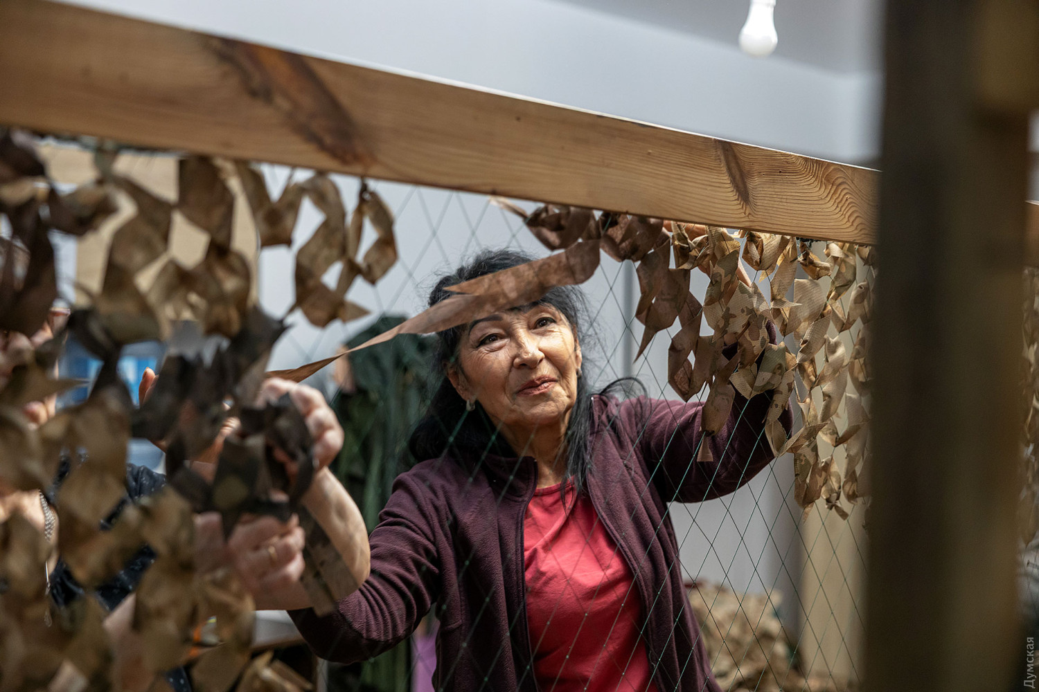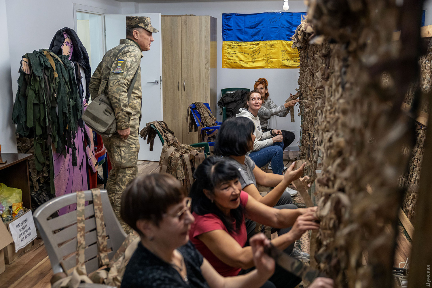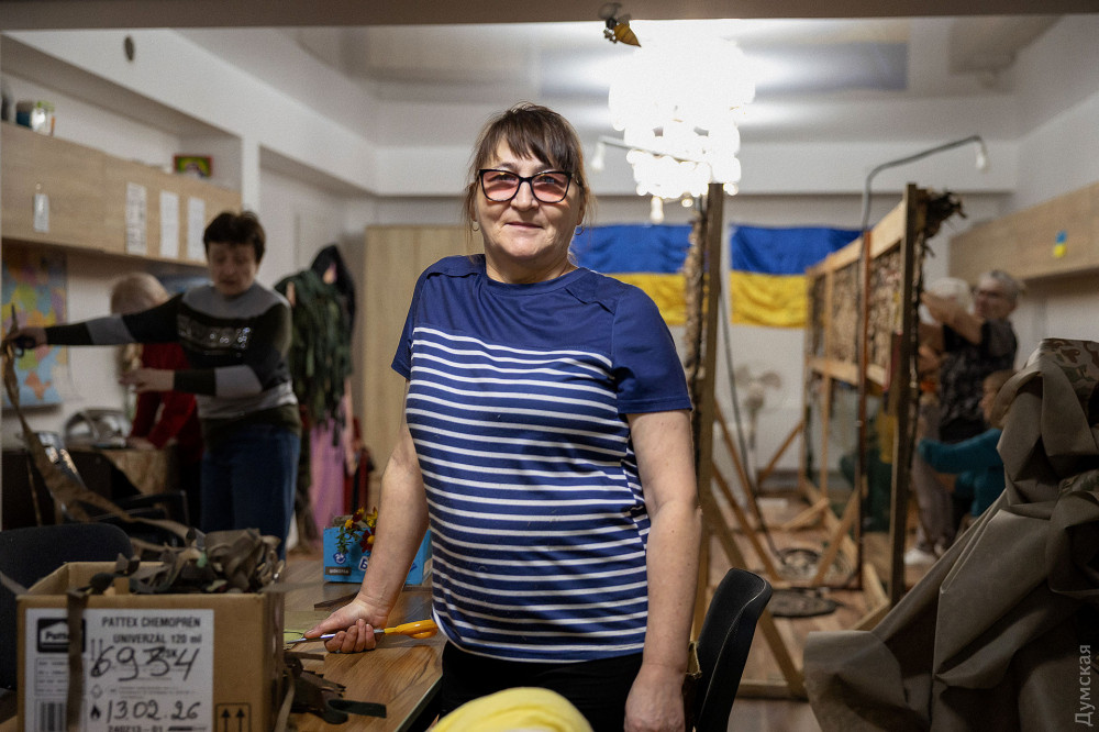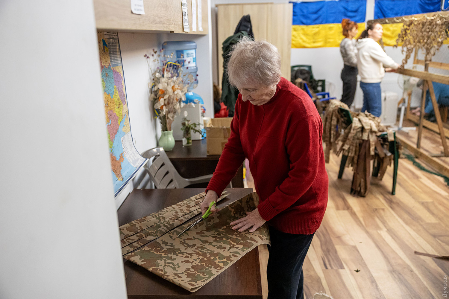 З перших днів повномасштабної війни волонтери підставили плече армії та державі. Поки одні йшли на фронт, інші закривали нескінченні дірки в забезпеченні, шили, плели, збирали, везли, рятували, знаходили потрібне в неможливих умовах. Завдяки тисячам рук по всій країні, оборона втрималася. І сьогодні, на четвертому році битви з російським злом, волонтери продовжують бути тим невидимим фронтом, який тримає країну в тонусі та допомагає ЗСУ виконувати свою роботу. У День волонтера кореспондент «Думської» відвідав один з найбільших волонтерських центрів Одеси — Гончаренко центр на площі Дерев'янко. Жіночі руки вправно зав'язують клапті камуфляжу на міцну рибальську основу. Сітка буквально на очах обростає тканиною і перетворюється на укриття, яке допоможе українським захисникам залишитися невидимими для ворожих розвідників і ударних безпілотників, а значить збереже найцінніше — життя бійців. На зворотному боці рами числа в кружечках — на цьому верстаті сплели вже 539 сіток. Всього ж Гончаренко центр за час повномасштабної війни передав фронту понад п'ять тисяч маскувальних полотен — приблизно 17 футбольних полів! «Ми плетемо щодня, без вихідних, — розповідає керівник волонтерського хабу Костянтин Задорожний. — У нас близько сотні волонтерів, і це найбільший центр на півдні України. Сюди приходять до роботи, після роботи, іноді замість роботи». Задорожний підкреслює, що сьогодні тут використовують виключно якісні матеріали: щільну рибальську сітку та український спанбонд потрібних кольорів. «На початку війни ми, як і всі, плели з того, що могли дістати, — згадує волонтер. — Сьогодні у нас, завдяки підтримці, є можливість працювати з найкращими матеріалами. Наші сітки не тільки маскують, вони захищають. Військові розповідали, що деякі полотна затримували дрони або навіть скид. Ми цим дуже пишаємося». За словами Костянтина Задорного, близько третини волонтерів центру — це переселенці. У більшості рідні та близькі захищають свободу нашої країни зі зброєю в руках. На одному з верстатів працює Марія. Її син зараз служить в ППО Одеської області. Сама жінка разом з чоловіком пережила окупацію рідного Херсона і переїхала до Одеси вже після визволення міста на Дніпрі. Жінка розповідає, що з того часу її будинок тричі потрапляв під обстріл. Марія плете сітки вже третій рік. Зізнається, коли після поганих новин починають опускатися руки, варто побачити бійців, які приїжджають за сітками — «відразу відкривається друге дихання». «Коли я бачу, як приходять хлопці за сітками — втомлені, не виспані, я розумію, для кого ми це робимо, — ділиться Марія. — Я сьогодні спала в теплому ліжку, а мій син зараз на Херсонщині в підвалі. Як можна не допомагати?». У сусідній кімнаті працює Галина. Жінка все життя пропрацювала акушером у лікарні Херсона і сьогодні перший день у центрі Гончаренка. Поки що нарізає стрічки з камуфляжної тканини. «Мене тут відразу прийняли, — розповідає Галина. — Тут усі дівчата такі веселі, добрі. Якщо щось роблю не так — допомагають. А співають як добре. І ми всі хочемо одного: щоб швидше настав день, коли ми закричимо: «Перемога!». Костянтин Задорожний зазначає, що крім плетіння сіток, у центрі постійно працюють безкоштовні освітні тренінги та майстер-класи для всіх вікових та соціальних груп. «Тут люди відчувають себе в комп