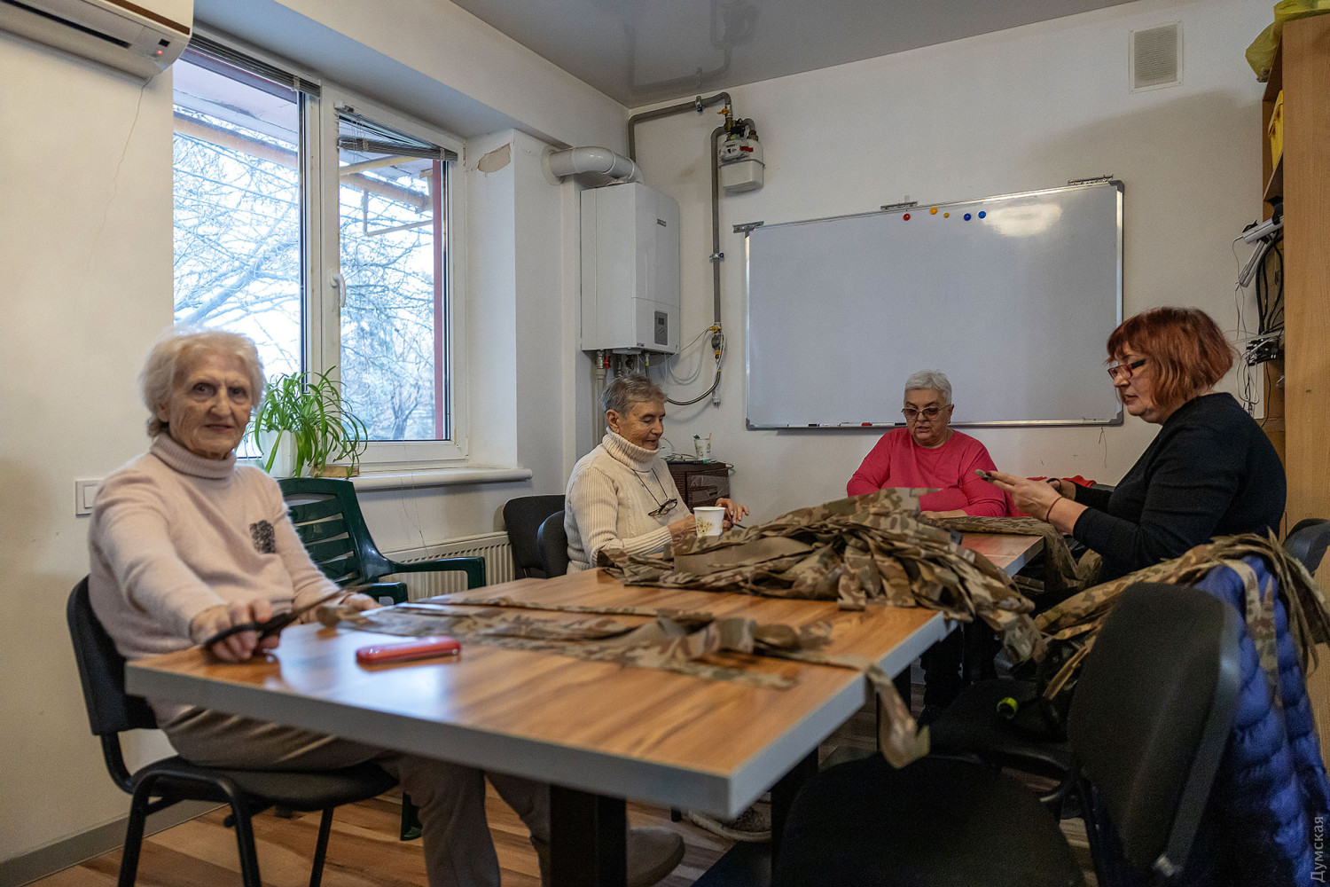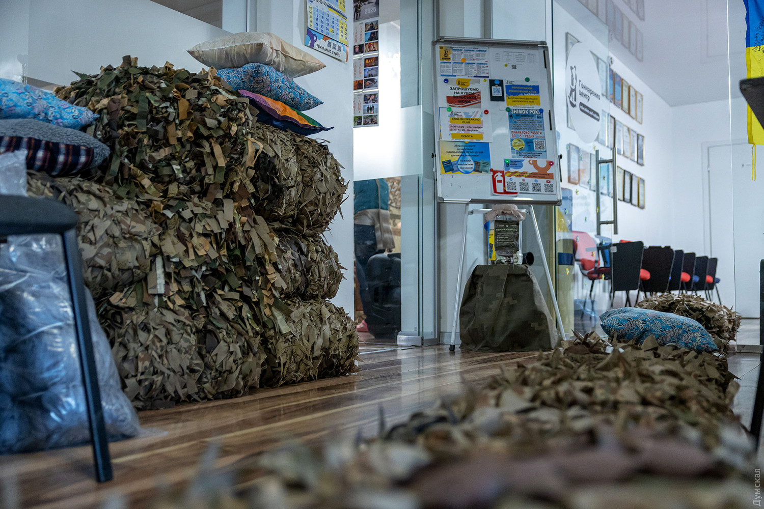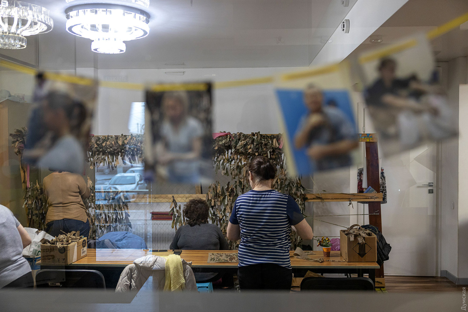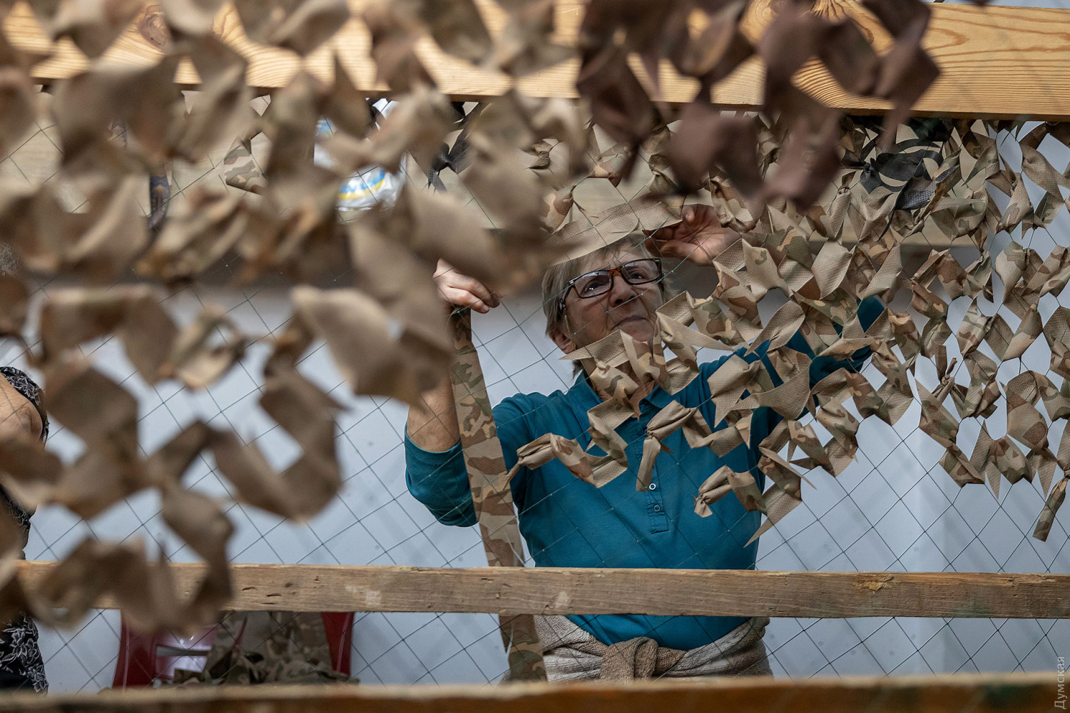 З перших днів повномасштабної війни волонтери підставили плече армії та державі. Поки одні йшли на фронт, інші закривали нескінченні дірки в забезпеченні, шили, плели, збирали, везли, рятували, знаходили потрібне в неможливих умовах. Завдяки тисячам рук по всій країні, оборона втрималася. І сьогодні, на четвертому році битви з російським злом, волонтери продовжують бути тим невидимим фронтом, який тримає країну в тонусі та допомагає ЗСУ виконувати свою роботу. У День волонтера кореспондент «Думської» відвідав один з найбільших волонтерських центрів Одеси — Гончаренко центр на площі Дерев'янко. Жіночі руки вправно зав'язують клапті камуфляжу на міцну рибальську основу. Сітка буквально на очах обростає тканиною і перетворюється на укриття, яке допоможе українським захисникам залишитися невидимими для ворожих розвідників і ударних безпілотників, а значить збереже найцінніше — життя бійців. На зворотному боці рами числа в кружечках — на цьому верстаті сплели вже 539 сіток. Всього ж Гончаренко центр за час повномасштабної війни передав фронту понад п'ять тисяч маскувальних полотен — приблизно 17 футбольних полів! «Ми плетемо щодня, без вихідних, — розповідає керівник волонтерського хабу Костянтин Задорожний. — У нас близько сотні волонтерів, і це найбільший центр на півдні України. Сюди приходять до роботи, після роботи, іноді замість роботи». Задорожний підкреслює, що сьогодні тут використовують виключно якісні матеріали: щільну рибальську сітку та український спанбонд потрібних кольорів. «На початку війни ми, як і всі, плели з того, що могли дістати, — згадує волонтер. — Сьогодні у нас, завдяки підтримці, є можливість працювати з найкращими матеріалами. Наші сітки не тільки маскують, вони захищають. Військові розповідали, що деякі полотна затримували дрони або навіть скид. Ми цим дуже пишаємося». За словами Костянтина Задорного, близько третини волонтерів центру — це переселенці. У більшості рідні та близькі захищають свободу нашої країни зі зброєю в руках. На одному з верстатів працює Марія. Її син зараз служить в ППО Одеської області. Сама жінка разом з чоловіком пережила окупацію рідного Херсона і переїхала до Одеси вже після визволення міста на Дніпрі. Жінка розповідає, що з того часу її будинок тричі потрапляв під обстріл. Марія плете сітки вже третій рік. Зізнається, коли після поганих новин починають опускатися руки, варто побачити бійців, які приїжджають за сітками — «відразу відкривається друге дихання». «Коли я бачу, як приходять хлопці за сітками — втомлені, не виспані, я розумію, для кого ми це робимо, — ділиться Марія. — Я сьогодні спала в теплому ліжку, а мій син зараз на Херсонщині в підвалі. Як можна не допомагати?». У сусідній кімнаті працює Галина. Жінка все життя пропрацювала акушером у лікарні Херсона і сьогодні перший день у центрі Гончаренка. Поки що нарізає стрічки з камуфляжної тканини. «Мене тут відразу прийняли, — розповідає Галина. — Тут усі дівчата такі веселі, добрі. Якщо щось роблю не так — допомагають. А співають як добре. І ми всі хочемо одного: щоб швидше настав день, коли ми закричимо: «Перемога!». Костянтин Задорожний зазначає, що крім плетіння сіток, у центрі постійно працюють безкоштовні освітні тренінги та майстер-класи для всіх вікових та соціальних груп. «Тут люди відчувають себе в комп