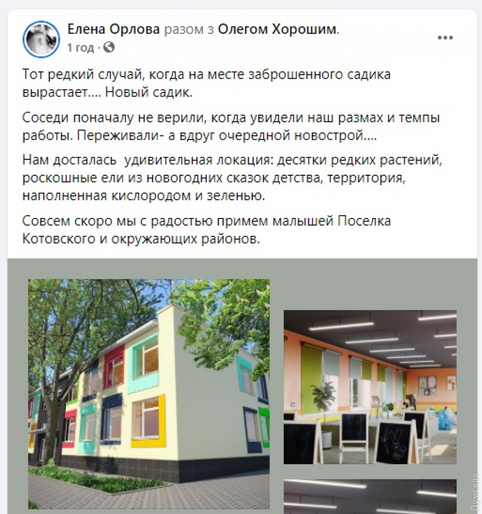 «Мы заключили договор. Мы - одни из крупнейших операторов на юге Украины, нам выпала такая честь — создавать большой детский сад. Ремонт уже начали, планируем открыться 1 ноября», — поделилась Орлова.