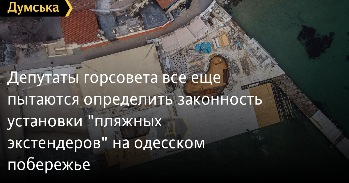 Депутаты горсовета все еще пытаются определить законность установки «пляжных экстендеров» на одесском побережьеЗаконность установки арендаторами пляжей деревянных настилов, увеличивающих площадь и закрывающих песок, все еще пытаются выяснить депутаты Одесского горсовета. Об этом стало известно в ходе заседания профильной комиссии по вопросам экологии, передает корреспондент «Думской». Сообщается, что полный пакет документов по «Итаке» обещали предоставить до 11 мая, но с тех пор комиссия ничего не получила. Выездное совещание на побережье тоже не дало заметных результатов. Из добытой информации — лишь устное заявление и.о. директора КП «Побережье Одессы» Дмитрия Беляева о том, что якобы все законно, а конструкции — вынужденная мера, вызванная размытием пляжей. «Создается впечатление, что проблему решили замолчать», — отметил секретарь комиссии Александр Байдерин. Отметим, что депутаты интересуются конструкциями не только «Итакой», но и клубами BONO, Red Line и Public Beach. На всех перечисленных пляжах отсутствует пятиметровая свободная зона вдоль линии моря. Разрешительную документацию на установку пляжных увеличителей на этот раз обязали предоставить до 7 июня письменно. СМЕРТЬ РОССИЙСКИМ ОККУПАНТАМ! Заметили ошибку? Выделяйте слова с ошибкой и нажимайте control-enter |