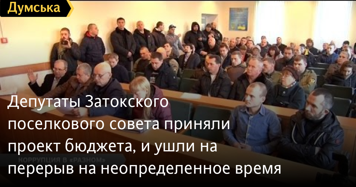 Депутаты Затокского поселкового совета приняли проект бюджета, и ушли на перерыв на неопределенное времяЭкстренная сессия Затокского поселкового совета. Несмотря на то, что бюджет населенного пункта был утвержден, Василий Звягинцев принял решение созвать срочное заседание для уточнения поправок. Параллельно в повестку дня внеочередной сессии включили и земельные вопросы? с которыми депутаты поселкового совета не имели возможности ознакомиться. СМЕРТЬ РОССИЙСКИМ ОККУПАНТАМ! Заметили ошибку? Выделяйте слова с ошибкой и нажимайте control-enter Думская ТВ. Сюжеты:
