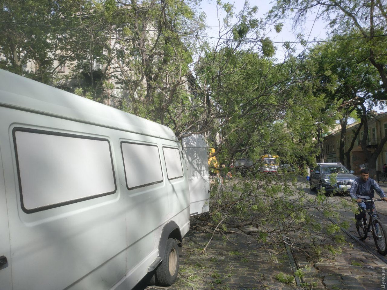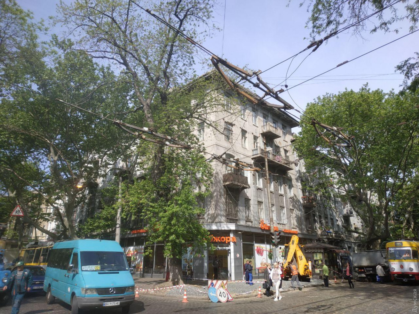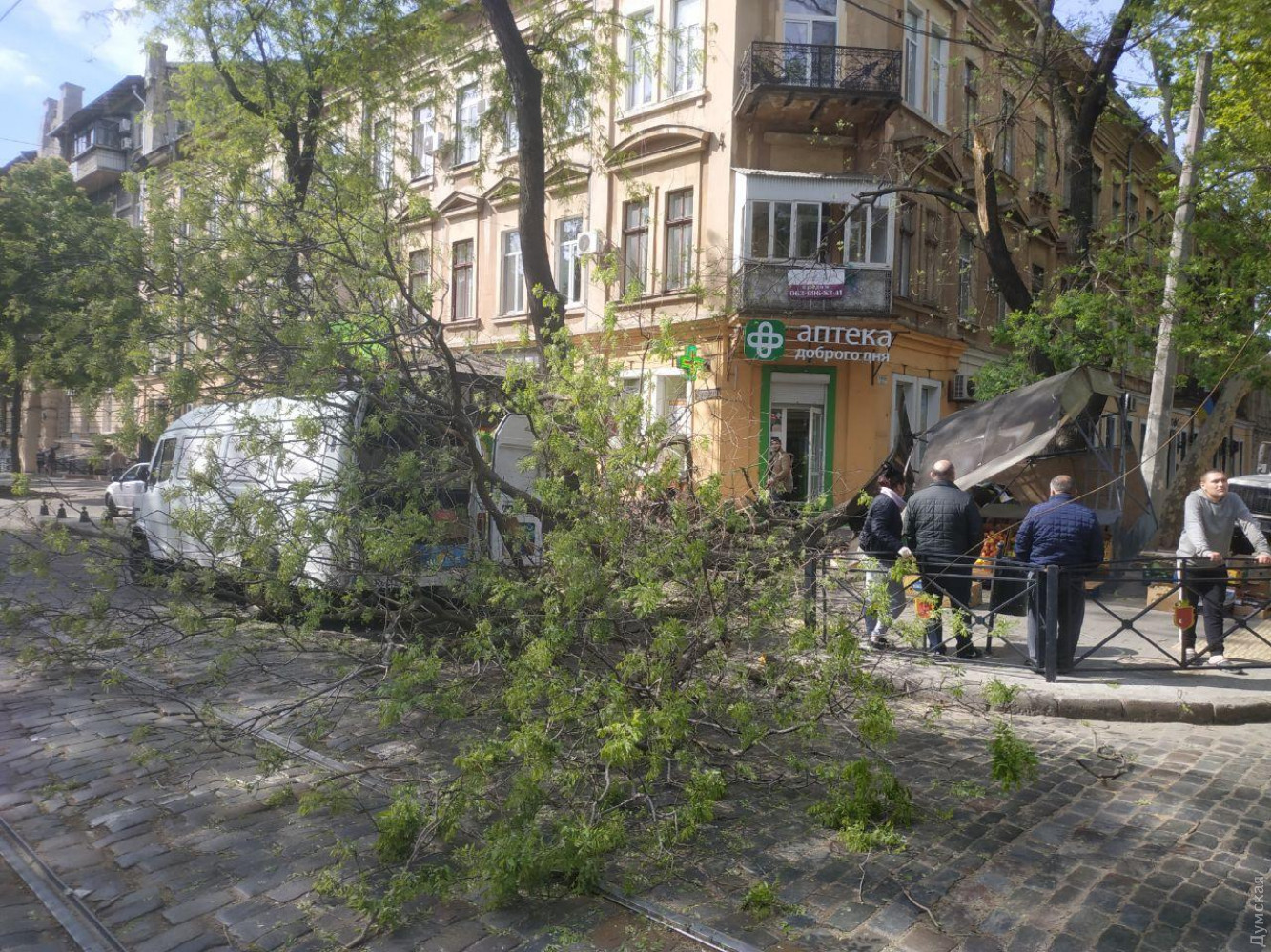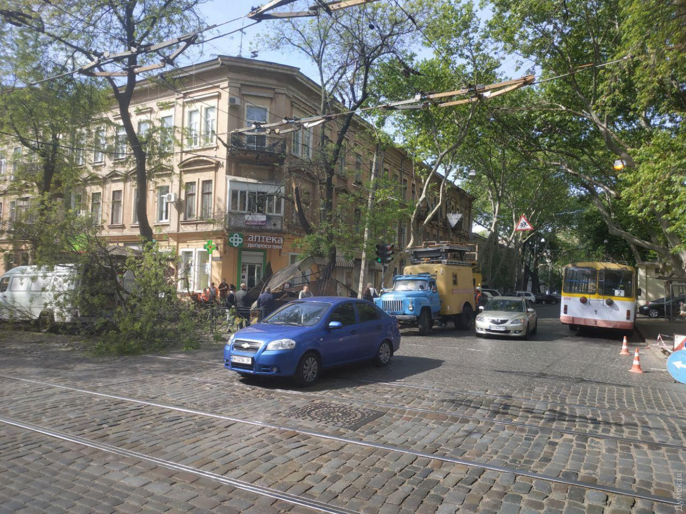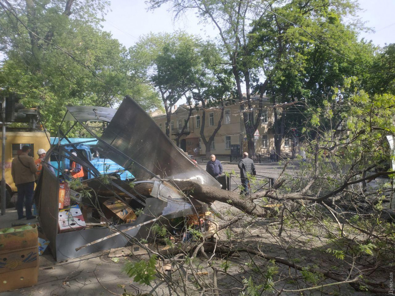 В центре Одессы ветка рухнула на овощной ларек и порвала провода электротранспортаВетка старой акации обрушилась на перекрестке улиц Нежинской и Льва Толстого в центре Одессы. Она смяла стоящий под деревом овощной ларек и порвала контактные линии трамвая и троллейбуса, передает корреспондент «Думской». По словам очевидцев, в момент падения в овощном ларьке находилась продавщица. Она не пострадала. Из-за обрушения остановилось движение троллейбусов по маршруту №2. Еще несколько маршрутов электротранспорта были скорректированы. «Троллейбус №7 ходит сейчас до Греческой, а трамвай №15 курсирует между Алексеевской и Тираспольской площадями», — отметили в пресс-службе «Одесгорэлектротранса». В данный момент на место ЧП приехали коммунальщики из «Горзелентреста» и ОГЭТ. Они планируют распилить ветку и убрать ее с проезжей части, а также восстановить разорванные контактные сети. СМЕРТЬ РОСІЙСЬКИМ ОКУПАНТАМ! Помітили помилку? Виділяйте слова з помилкою та натискайте control-enter |