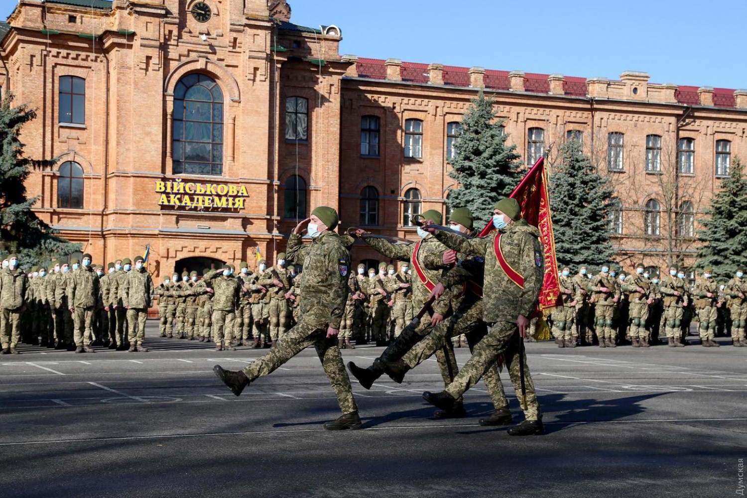 Десятилетие Военной академии Одессы: на плацу устроили показательные выступления, сыграл черниговский оркестр и провели спортивные соревнования23 марта Военная академия Одессы отмечает десятилетний юбилей своей работы после реорганизации в 2011 году. В честь праздника на плацу перед главным корпусом академии выстроились военнослужащие и прошли показательные выступления курсантов факультетов высокомобильных войск, морской пехоты и специалистов военной разведки и спецназа. В том числе бойцы на ходу выпрыгивали из бронемашины и брали здание штурмом, спускаясь на канатах с крыши. Поздравить вуз с первым юбилеем приехали замначальника Генштаба ВСУ генерал-лейтенант Павел Зуев, замкомандующего Сухопутных войск генерал-майор Александр Голоднюк, командующий ВМСУ Алексей Неижпапа, губернатор Одесской области Сергей Гриневецкий, глава облсовета Григорий Диденко и вице-мэр Олег Толмачев. До официальной церемонии на главной аллее во дворе академии символически высадили ель – «дерево, которое будет расти и наблюдать за всеми изменениями в стенах академии». Вчера, чтобы поздравить побратимов, в вуз приехал черниговский военный оркестр, который устроил торжественный концерт. Кроме этого, на территории спорткомплекса вуза состоялись спортивные соревнования на Кубок начальника Военной академии. Первое место завоевали курсанты факультета ДШВ, лучшим в гиревом спорте оказался курсант-ракетчик Андрей Ищук, а в километровом военизированном кроссе победил курсант факультета военной разведки и спецназа Максим Регула. Одесская военная академия является правопреемницей Одесского института сухопутных войск, расформированного постановлением Кабмина от 2005-го года. 30 августа 2006-го на базе бывшего ОИСВ был создан военный институт Одесского национального политехнического университета. До 2010-го года он занимался в основном подготовкой офицеров запаса, выполняя роль большой военной кафедры. В 2010 году военный институт Политеха снова начал обучать кадровых офицеров – из Львова в Одессу вернули тыловиков, кафедру службы ракетно-артиллерийского вооружения и инструкторов физподготовки. В августе 2011-го институт реорганизовали в Военною академию, а ряды обучающихся пополнили будущие специалисты по горюче-смазочным материалам и военные автомобилисты. В 2012 году в академии появился факультет высокомобильных войск и разведки. В 2013 году в вузе состоялся первый выпуск. Весной 2014 года военная академия приняла верных Украине курсантов-нахимовцев Севастопольской академии Военно-морских сил Украины. С 2016 года в Военной академии начали подготовку офицеров морской пехоты. В 2020 году академия выпустила 282 лейтенанта. Половина из них до учебы принимали участие в Операции объединенных сил. Около 10% курсантов — девушки. К десятилетию Военная академия обзавелась новой эмблемой. СМЕРТЬ РОСІЙСЬКИМ ОКУПАНТАМ! Помітили помилку? Виділяйте слова з помилкою та натискайте control-enter |