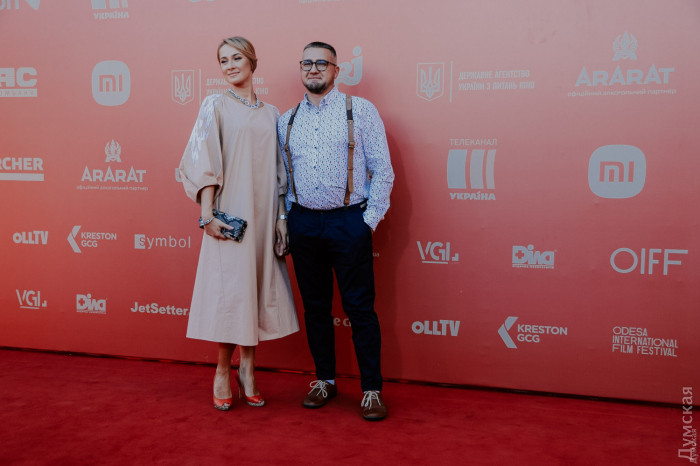 Еще один незабываемый образ Красной дорожки Одесского кинофестиваля создал А-RAM (Арам Торунян) и его спутница. Они оба заменяют пару обладателя подтяжек с белыми шнурками и его спутницы. Тем более, что дресс кодом фестиваля является Black Tie (чёрный галстук).