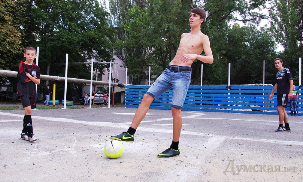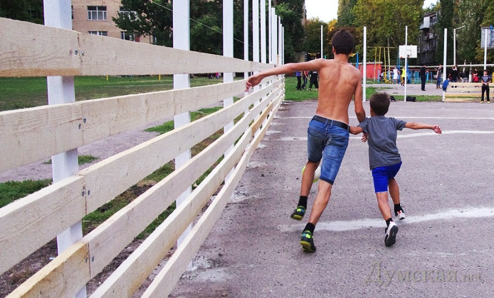 Детишки играют в футбол Чем не тема для фоторепортажа? Не все ж политиков фоткать! Тем более, что, судя по всему, именно в окрестностях школы №28, что на улице Академика Филатова, подрастает будущее нашего спорта. Обратите внимание на состав противоборствующих команд. Уже начавшим бриться юношам бросили вызов десятилетние мальки. Младшее поколение дышит рослым соперникам в пупок, но, что характерно, футбольное сражение идет на равных. Играют пацаны бесстрашно, по-дворовому, рассекая в кедах по асфальту. Каждый гол вызывает такую бурю эмоций, что куда там матчам премьер-лиги! Да, забор, который ставят вокруг школьного поля — не строительный, а чтобы мяч не вылетал. Фото Алексея Кравцова СМЕРТЬ РОСІЙСЬКИМ ОКУПАНТАМ! Помітили помилку? Виділяйте слова з помилкою та натискайте control-enter |