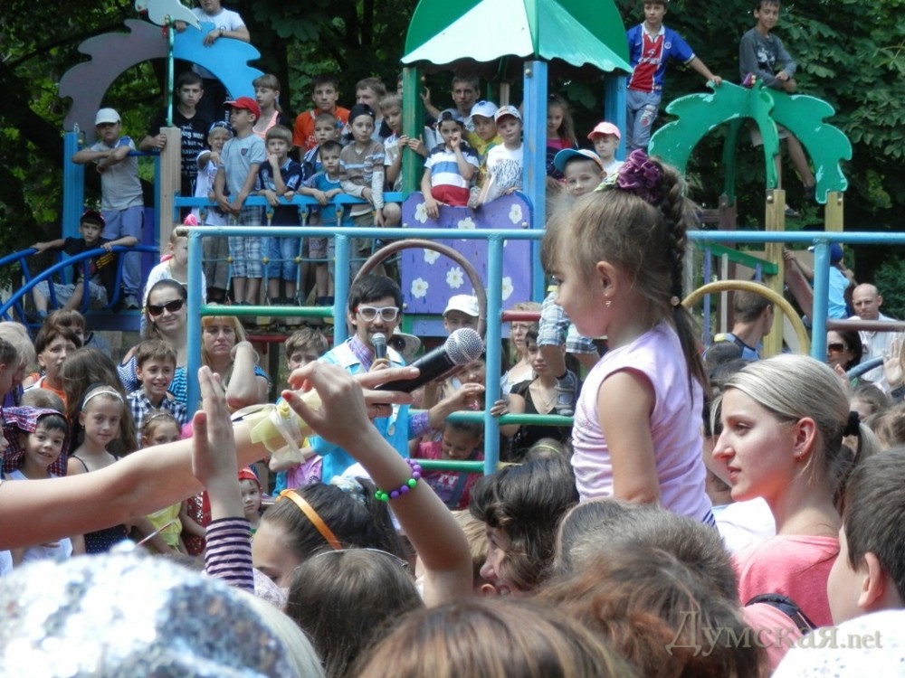 Несмотря на заверения властей о вынужденной отмене всех городских мероприятий, детский праздник на Слободке при поддержке депутата Одесского городского совета Дмитрия Пеструева все-таки состоялся. Несколько сотен маленьких жителей района получили подарки и приняли участие в веселых конкурсах. Праздник прошел в сквере на углу улиц Воробьева и Сергея Ядова. Чтобы расчистить площадку от десятков поваленных деревьев и кустов, организаторам праздника и сотрудникам городских служб пришлось работать три часа кряду. К моменту появления детей с родителями сквер был уже украшен воздушными шарами, здесь появилась импровизированная сцена. «Праздник мы проводим здесь уже четвертый год подряд и каждый раз гостей у нас все больше и больше. Приходят дети со всей Слободки», — рассказал «Думской» Дмитрий Пеструев. В сквере собрались и молодые мамы с грудничками, и малышня садиковского возраста, и школьники. Все старались стать поближе к сцене, а самые решительные даже выходили за импровизированное ограждение. Первый конкурс чем-то походил на известное шоу «Караоке на Майдане» — дети угадывали песню из мультфильма и старались воспроизвести ее в микрофон. Примечательно, что малышня отгадывала не только хиты из заморских мультфильмов, но и наизусть знала песенки из советских мультиков – «Голубой вагон», «Песенку друзей» и другие. «Мне больше всего этот конкурс понравился. Я угадала все песни», — похвасталась нам 5-летняя Варя. Кроме конкурса вокальных талантов, дети соревновались в умении танцевать и даже катались на бутафорной лошади. Плюшевый конь «прискакал» на сцену вместе со звездным наездником – участником шоу «Україна має талант» Красавчиком. Шанс укротить лошадку дали не только детям, но и одному любопытному папе. «А я уже катался на настоящем коне, его звали Силач. Я его еще яблоками кормил», — поделился с нами один из гостей праздника Вовочка. Праздник закончился массовым хороводом и «раздачей слонов» — все гости праздника получили в подарок мягкие игрушки. «Этот праздник – еще один шанс напомнить взрослым, что самое ценное, что есть в жизни – это дети. Оставить после себя наследников – это самый большой вклад, который мы можем сделать для будущего», — говорит организатор праздника. СМЕРТЬ РОСІЙСЬКИМ ОКУПАНТАМ! Помітили помилку? Виділяйте слова з помилкою та натискайте control-enter |