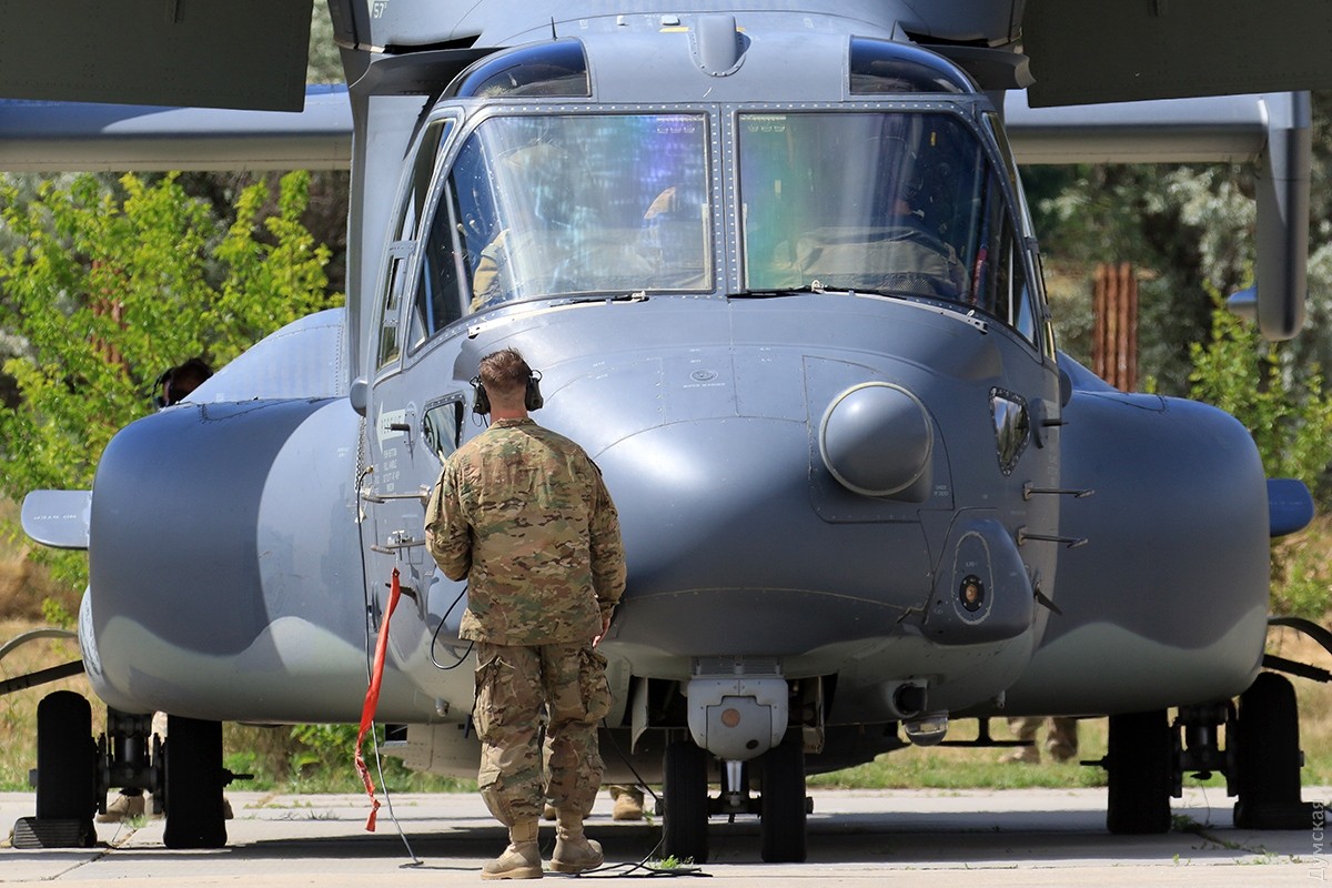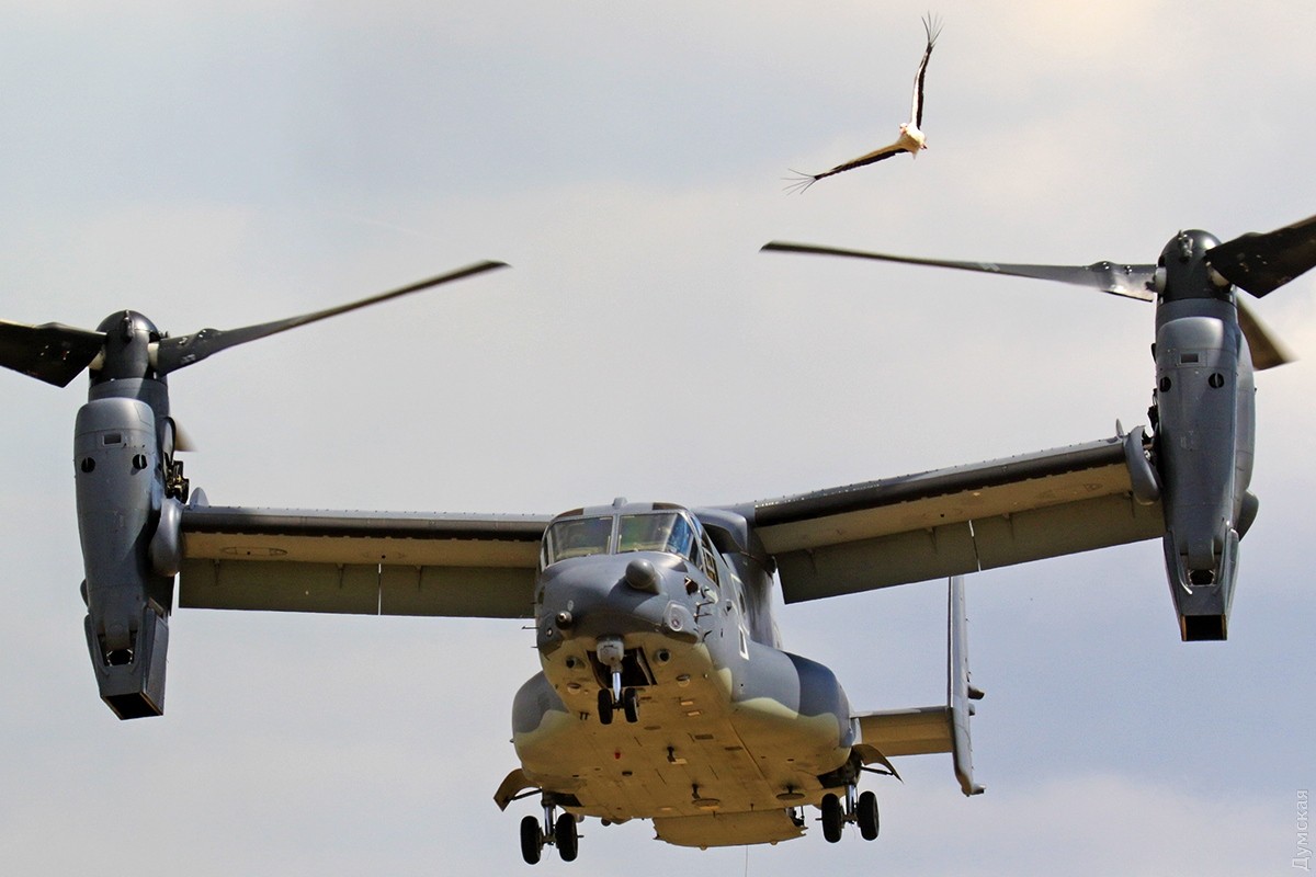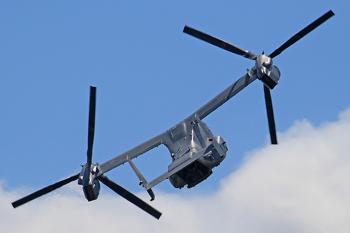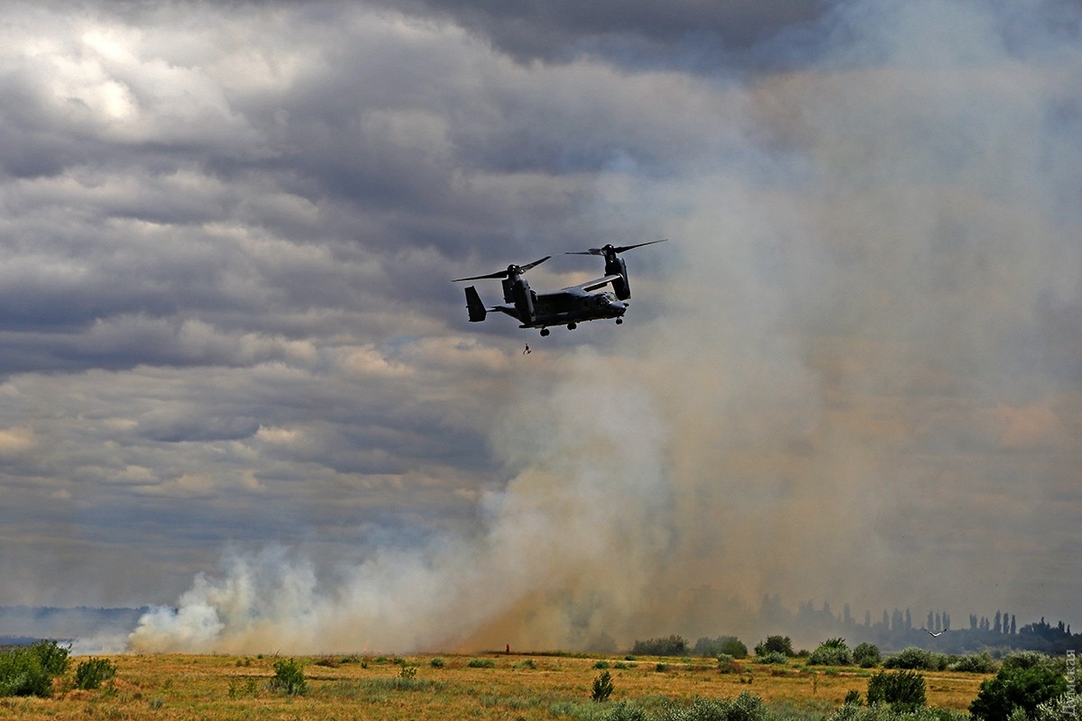 Первыми на учения прибыли два новейших P-8 Poseidon. Они приземлились в Одессе днем 11 июля и после пограничных формальностей борт 762 ушел на николаевский аэродром Кульбакино, а 855 остался у нас. Следом за «Посейдонами», ближе к вечеру прибыли конвертопланы OV-22 Osprey. За несколько дней эти необычные машины наделали много шума в социальных сетях, но про их реальные возможности нам еще предстоит узнать. Американцы разбили городок спецподразделения конвертопланов на площадке Сакской морской авиационной бригады в Кульбакино, вместе с базирующейся там нашей морской авиацией. Еще одной авиационной новинкой этих учений стали два палубных вертолета MH-60R, размещенных на американском ракетном крейсере CG66 Hue City. Вертушки представляют собой модернизированный вариант широко известного палубного UH-60, принятого на вооружение в 1984 году. На борту крейсера находятся два новейших специализированных противолодочных вертолета, оснащенных полным спектром средств для поиска субмарин. Одна из новинок — опускаемая в режиме зависания вертолета гидроакустическая станция. Авиационная составляющая учений с украинской стороны как всегда представлена морской авиацией 10 Сакской бригады ВМСУ ( Ан-26, Ка-27, Ми-14, Ан-2), штурмовиками Су-25М1 из 299 БрТА (бригады тактической авиации), истребителями Миг-29/УБ из 204 БрТА и вертолетами Ми-8 и Ми-24 из 11 Бригады армейской авиации. Государственная пограничная охрана также участвует в учениях с самолетам Diamond DA42 и вертолетом Ми-9. Начальная учебная часть «Си Бриза» подошла к концу. Морские летчики усиленно отрабатывают высадку десанта, а армейская авиация огневую поддержку подразделений. Спасательные операции на море тоже никто не отменял, поэтому наши совместно с американским спецназом, прибывшим на «Оспреях», отрабатывают взаимодействие в случае непредвиденных ситуаций. Завтра в Черном море начинается активная фаза учений. Авиация играет в ней ключевую роль, во всяком случае американцы очень надеются на свои «Си Хоки», которые должны проявить себя в поиске вражеской подводной лодки Фото Сергея Смоленцева