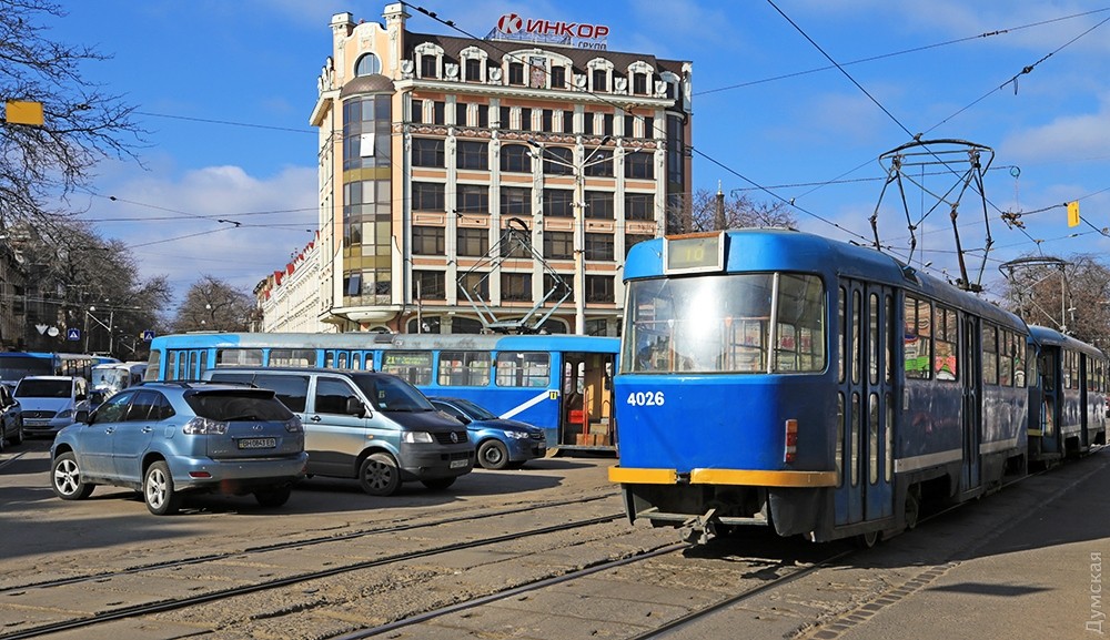 Сегодня около 14:00 на Тираспольской площади наблюдалось скопление более 10 трамвайных вагонов разных маршрутов, сообщает корреспондент «Думской».