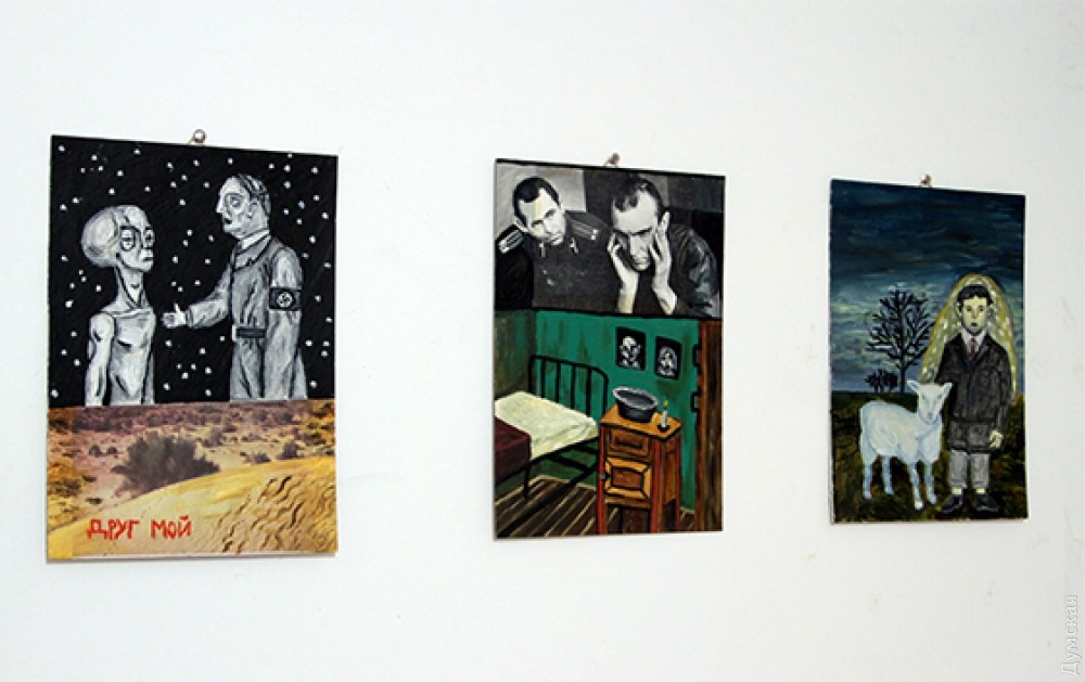 Добро пожаловать в санаторий дьявола: в Музее современного искусства Одессы – психоделический лубокПерсональный проект молодого художника из Червонограда Юрия Болсы под названием «Негативные стороны» открыт до 3 декабря в пространстве творческих инициатив «Артерия» Музея современного искусства Одессы (Белинского, 5). Куратор «Артерии» Роман Громов обещал, что отныне зарекается делать гладенькие и сладенькие выставки, для которых вполне хватает других галерей. Обещал эпатаж и потрясение, и обещание свое, в целом, сдержал. Девятнадцатилетний натуральный блондин Юрий Болса представил мрачную живопись и столь же мрачный коллаж, обличая героев своих произведений. Так, комментируя один из коллажей, Юрий сказал: «Здесь мы видим телку, которая хочет завлечь чувака и питаться им!». Наверное, чтобы не попасть в подобную ситуацию, сам молодой художник ест чрезвычайно мало. Худенький и субтильный, он, по выражению Романа Громова, подобен машине, может работать, практически не принимая пищи. В коллажах использовано немало вырезок из журналов «Радянська жинка» и «Работница», что добавляет иронии и сарказма по отношению, прежде всего, к своим предкам. «Художник позволяет себе насмехаться над окружающим его миром, никчемностью реалий жизни. Юрий Болса создает довольно депрессивные иллюстрации и полотна, погружая зрителя в мир экспрессионизма и экзистенциализма в сартровской трактовке этих понятий. Полу-хроническое депрессивное состояние художника движет им и заставляет писать тяжелые, а подчас и суицидальные работы, в которых зритель может увидеть гипертрофированные сцены повседневности. Художник не пытается навязать свое видение реальности, а лишь отражает все, что видит, словно черное зеркало!», — пишется в аннотации к выставке. Видимо, беда – когда представляешь себе, что произведен на свет разноцветными монстрами, а «телки» вот-вот тебя съедят. Стоп, а почему бы художнику не переехать в наш «санаторий дьявола» (заодно и подкормим), может, вылечится от комплексов в отрыве от привычной среды «царства Саурона»?.. Юрий Болса не получил художественного образования, просто не захотел тратить на это время и силы, необходимые для творчества. Как бы то ни было, равнодушных зрителей на его дебютной в Одессе выставке не встретить – каждого затронул за живое! Значит, что-то ценное в его искусстве присутствует. Автор — Ирэн Адлер, фото Владимира Андреева СМЕРТЬ РОСІЙСЬКИМ ОКУПАНТАМ! Помітили помилку? Виділяйте слова з помилкою та натискайте control-enter Новини по цій темі: 2 листопада 2025: «Амінь, і поїхали»: одеситам показали портрети відьом та козака-характерника (фото) 22 вересня 2025: Артист не може бути поза політикою: Dakh Daughters в Одесі розповіли про відьом, важкі міста і в який час краще жити 19 вересня 2025: Йому довірять робити раму для Караваджо: одеситам показали виставку литовського музейника |