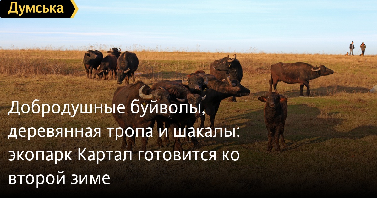 На самом юге Одесской области, недалеко от села Орловка, где устраивают шаманские обряды, в 2016 году открыли экологический парк «Картал». Главной здешней достопримечательностью стало специально завезенное в Придунавье стадо индийских водяных буйволов. «Думская» отправилась проведать черных пришельцев. Экопарк раскинулся в живописных плавнях озера Картал на берегу Дуная. В хорошую погоду отсюда виден противоположный берег и предгорья румынских Карпат. Парк создан в рамках международного проекта на деньги Евросоюза, а расположен он на территории Орловского сельсовета. Подобные проекты призваны улучшать экологическую ситуацию и давать возможность жителям больших городов прикоснуться к дикой природе. В октябре 2016 года в «Картал» из Закарпатья привезли дюжину индийских водяных буйволов. Там, в селе Стебелевка Хустского района, уже несколько лет функционирует Станция спасения, которая занимается разведением исчезающих видов животных. Основатель организации — немец Мишель Якоби. За первый год на новом месте в стаде родилось четыре теленка. Это очень хороший показатель. Экологи не нарадуются — говорят, сами не ожидали, что за такой короткий срок буйволы полностью приспособятся к новым условиям. Правда, не обошлось без потерь. Одна из самок вошла в зиму беременной и умерла сразу после тяжелых родов. Неожиданно скончался и один теленок. Вскрытие показало, что причиной смерти стал съеденный им полиэтиленовый пакет. Сейчас стадо насчитывает 14 особей и одна из самок вынашивает детеныша. Грозные с виду черные буйволы оказались вполне добродушными животными, они легко установили контакт с человеком. Переворачиваясь с боку на бок, они подставляют абсолютно незнакомым туристам свое пузо для ласкового похлопывания, а путешествующие по парку красотки полюбили делать селфи с этими редкими парнокопытными. Вторая зима пока что выдалась довольно мягкой, но, возможно, она еще покажет свой суровый нрав. Экологи говорят, что водяные буйволы достаточно выносливы, но в морозы и снегопады им все-таки потребуется помощь человека. Сейчас за стадом постоянно следит несколько пастухов-погонщиков. «В снежные и морозные дни буйволы содержатся на ферме, где их кормят заготовленным тут же сеном, а в остальное время – на полувольном содержании. При сильных снегопадах они не смогут самостоятельно добывать себе корм», — говорит старший научный сотрудник общественной организации «Центр региональных исследований» Олег Дьяков. Осенью 2017-го в экопарке усиленно строили туристическую инфраструктуру. Над водной гладью озера и через заросли камышей была проложена тропа из досок. Ходить по ней немного страшновато – две 20-сантиметровые доски лежат на бревенчатых сваях и прогибаются под тяжестью взрослых людей. Общая длина тропы — около 2 километров, из них 300 метров проложено в полутора метрах над водой. Работники парка готовы устраивать не только пешеходные, но и конные и велосипедные экскурсии. Отдельно проложен лодочный маршрут. Установлена также охранная десятиметровая вышка, с которой можно наблюдать за буйволами и птицами. Чтобы разнообразить местную фауну и привлечь туристов, было решено в 2018 году завезти в парк несколько новых животных. Каких именно — пока держат в секрете. По косвенным признакам можно догадаться, что вероятнее всего, это б