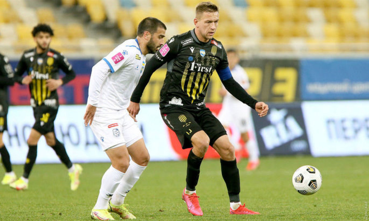 Долгожданная “домашняя” победа: “Черноморец” во Львове в матче-триллере одолел “Рух”Одесский «Черноморец» прервал свою безвыигрышную серию и одержал, наконец, важнейшую победу над львовским «Рухом». Номинально, это победа домашняя, но по взаимной договоренности с соперником играли на «Арене-Львов». Все же газон стадиона в Одессе решили поберечь до товарищеского матча сборной Украины с болгарами, который пройдет на нашем стадионе 11 ноября. Стены хоть и не свои, но морякам в первом тайме изрядно помогли. На перерыв подопечные Юрия Мороза ушли с комфортным преимуществом в два мяча. На 30-ой минуте Владислав Ванат первым сориентировался на добивании. Еще через 8 минут «хозяева» провели образцово-показательную атаку. Мяч с левого фланга в несколько касаний доставили к правому углу штрафной, откуда Артур Авагимян обводящим ударом точно пробил под штангу. Второй тайм для «Черноморца» начался лучше не придумаешь. Сначала голкипер Владислав Кучерук отразил пенальти от игрока «Руха» Борячука, а затем Георгий Цитаишвили наказал львовских защитников за серию ошибок. Обводящий дальний удар в стиле Авагимяна, только с левой — 3:0. Матч можно закрывать? Как бы не так. С 67 по 79-ую минуту одесситы пропустили три мяча! Мартынюк точно пробил со штрафного, а Валерию Федорчуку удался дубль из результативных дальних ударов. Во втором случае имел место обидный рикошет. Игра моментально перевернулась, а тут еще тренер моряков Юрий Мороз договорился до красной карточки. Тут бы уже до финального свистка дотерпеть… И тут «Черноморец» к всеобщему удивлению нашел сил на контратаку. На 83-й минуте Михаленко подключил к атаке Тлумака, и тот не без везения пробил Панькива — 4:3! Невероятная, удивительная и очень важная победа «Черноморца». Автор — Виталий Хемий, спортивный обозреватель «Думской» СМЕРТЬ РОСІЙСЬКИМ ОКУПАНТАМ! Помітили помилку? Виділяйте слова з помилкою та натискайте control-enter |