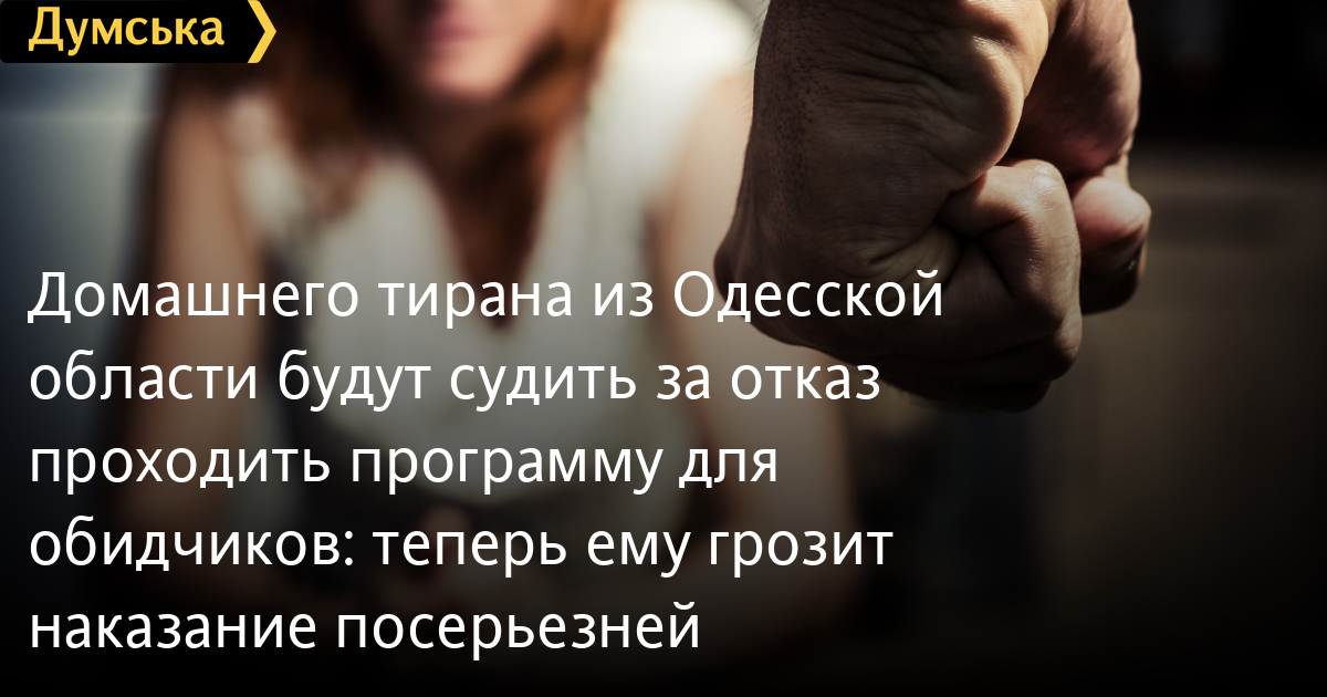 Домашнього тирана з Одещини судитимуть за відмову проходити програму для кривдників: тепер йому загрожує покарання суворіше51-річний мешканець Ізмаїла, якого притягнули до адміністративної відповідальності за домашнє насильство над дружиною, відмовився від програми корекції поведінки й тепер йому загрожує два роки обмеження волі. Чоловіку висунули обвинувачення в умисному ухиленні від проходження програми для кривдників особи, щодо якої такі заходи застосовано судом, повідомили в поліції Одещини. Обвинувальний акт уже скерували до суду. Чоловікові загрожує до двох років пробаційного нагляду або обмеження волі на той самий строк. Чоловік уже має судимості за заподіяння тяжких тілесних ушкоджень, хуліганство, наркотичні злочини. Раніше суд оштрафував його на 340 гривень, які він навіть виплатив. Якщо ви стали жертвою домашнього насильства, або свідками такого правопорушення, звертайтеся до найближчого відділу поліції або телефонуйте 102. Консультацію можна отримати і на гарячій лінії з протидії торгівлі людьми, запобігання та протидії домашньому насильству, насильству за ознакою статі та насильству щодо дітей за номером 15-47 або до єдиного контакт-центру системи безоплатної правової допомоги за номером 0 800 213 103. Помітили помилку? Виділяйте слова з помилкою та натискайте control-enter |