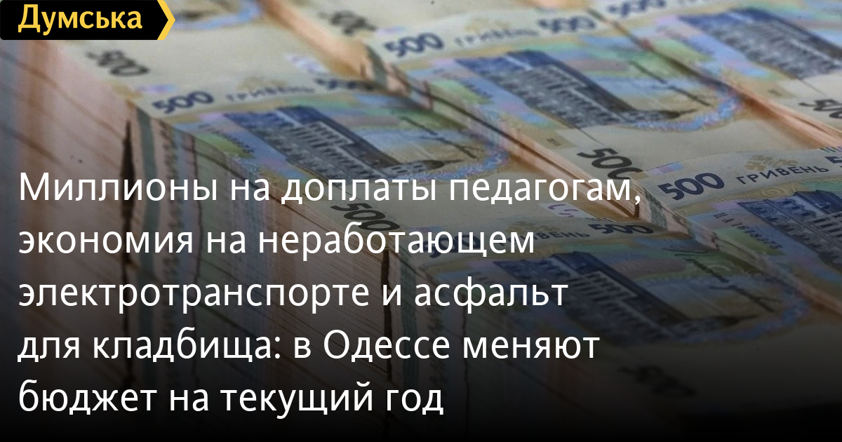 Миллионы на доплаты педагогам, экономия на неработающем электротранспорте и асфальт для кладбища: в Одессе меняют бюджет на текущий годСущественные изменения в бюджет города на 2026 год согласовала постоянная комиссия по вопросам планирования, бюджета и финансов Одесского горсовета. Как сообщает корреспондент «Думской», речь идет о перераспределении сотен миллионов гривен, а окончательное решение депутаты должны принять на сессии 25 февраля. Около 300 млн грн планируют направить на увеличение выплат учителям и социальным работникам. Сейчас мэрия проводит проверку штатных расписаний для уточнения окончательной суммы. Средства на эти доплаты возьмут из промежуточного остатка городского бюджета, который сейчас составляет около 680 млн грн. По закону во время войны такие деньги имеют строго целевое назначение: их можно тратить либо на зарплаты и соцподдержку, либо на помощь армии и оборону. В данном случае почти половину этой суммы направят на выполнение постановления Кабмина №228 от 19 февраля, которое предписывает городам в первую очередь закрывать вопросы по выплатам бюджетникам. Член комиссии Олег Звягин подчеркнул, что такая финансовая нагрузка на город стала вынужденной мерой. «Это просто переложено, к сожалению, на плечи местного самоуправления. Мы должны поддерживать учителей, но это должно было быть заложено в государственный бюджет. Повышение приняли, а средства не предусмотрели», — пояснил он. В ходе комиссии также стало известно, что из-за простоя трамваев и троллейбусов КП «Одесгорэлектротранс» сэкономило 28 млн грн. Их решили перераспределить в резервный фонд бюджета. Однако называть это реальной экономией сложно. Дело в том, что пока электротранспорт стоит в депо, город запускает по улицам бесплатные социальные автобусы. Содержание лишь одной такой машины обходится бюджету минимум в 6 млн грн в год. Таким образом, чтобы обеспечить работу хотя бы 20 таких автобусов, городу нужно найти дополнительно около 120 млн грн. В то же время 14 млн грн планируют потратить на ремонт дороги на Западном кладбище. Отметим, что в ноябре 2024 года коммунальные службы уже объявляли тендер на строительство дороги на этом же объекте на сумму более 18 млн грн. Также во время заседания комиссии стало известно, что в этом году бюджет развития города почти вдвое меньше, чем в прошлом — 1,7 млрд гривен (в 2026 году) против 3,4 млрд (в 2025-м). При этом если будет перевыполнение бюджета в течение года, то эта цифра может увеличиться. Примечательно, что члены бюджетной комиссии фактически не могли внести правки в предложенные проекты, поскольку ранее все уже было согласовано временной комиссией городской военной администрации по распределению публичных инвестиций. Именно она определяет приоритетность расходов бюджета в условиях военного положения. Напомним, попытка провести сессию 11 февраля провалилась. Камнем преткновения стал бюджет развития. В отсутствии главы военной городской администрации Сергея Лысака, не было нормальной коммуникации между всеми ветвями городской власти. В широком понимании: департаменты и управления мэрии, фракции, вице-мэры и и.о. городского головы Игорь Коваль и военная администрация не нашли контакта. Поскольку по закону определяющую роль в бюджетном процессе играет именно ГВА, с возвращением Лысака ситуацию начали р