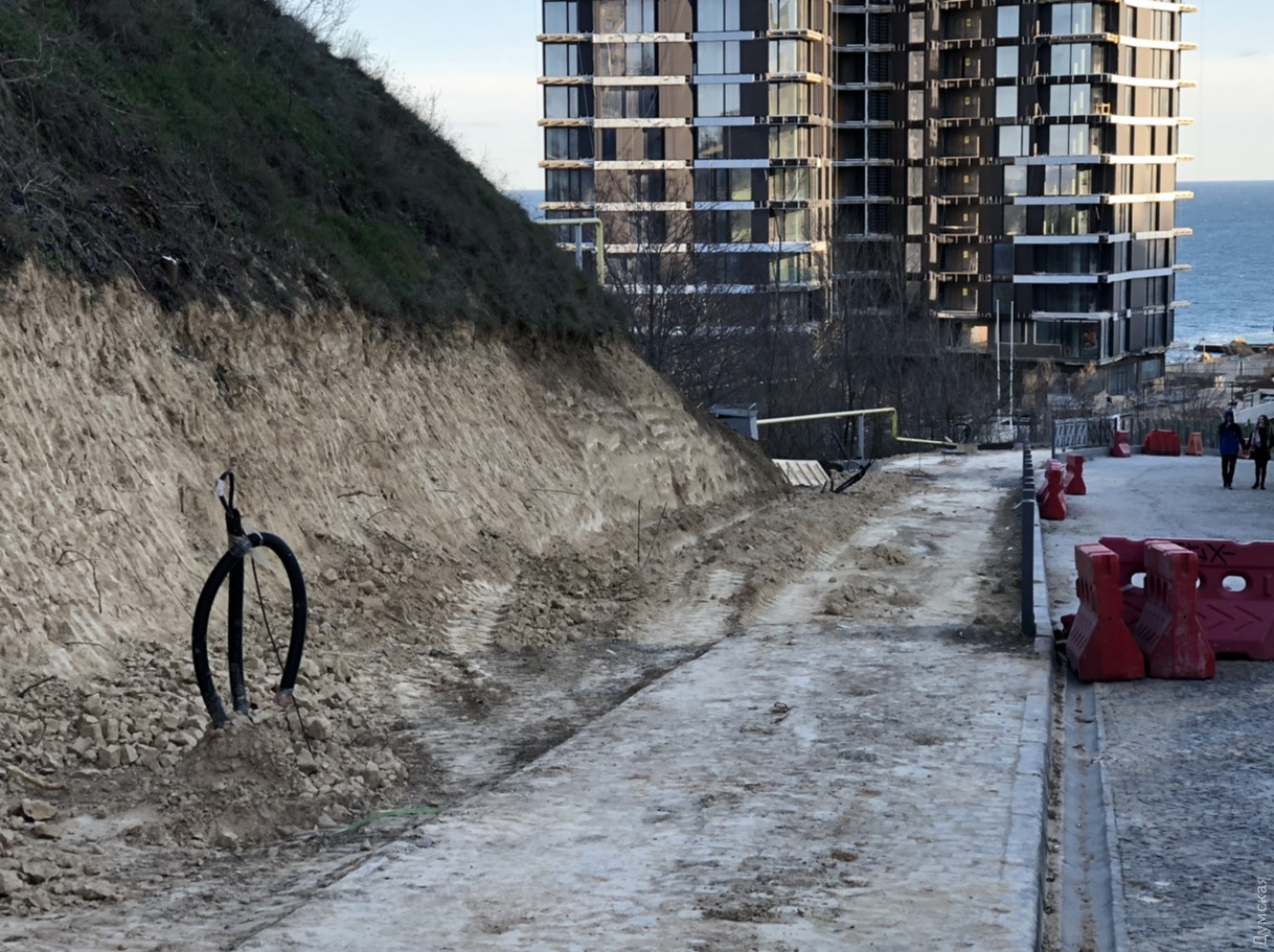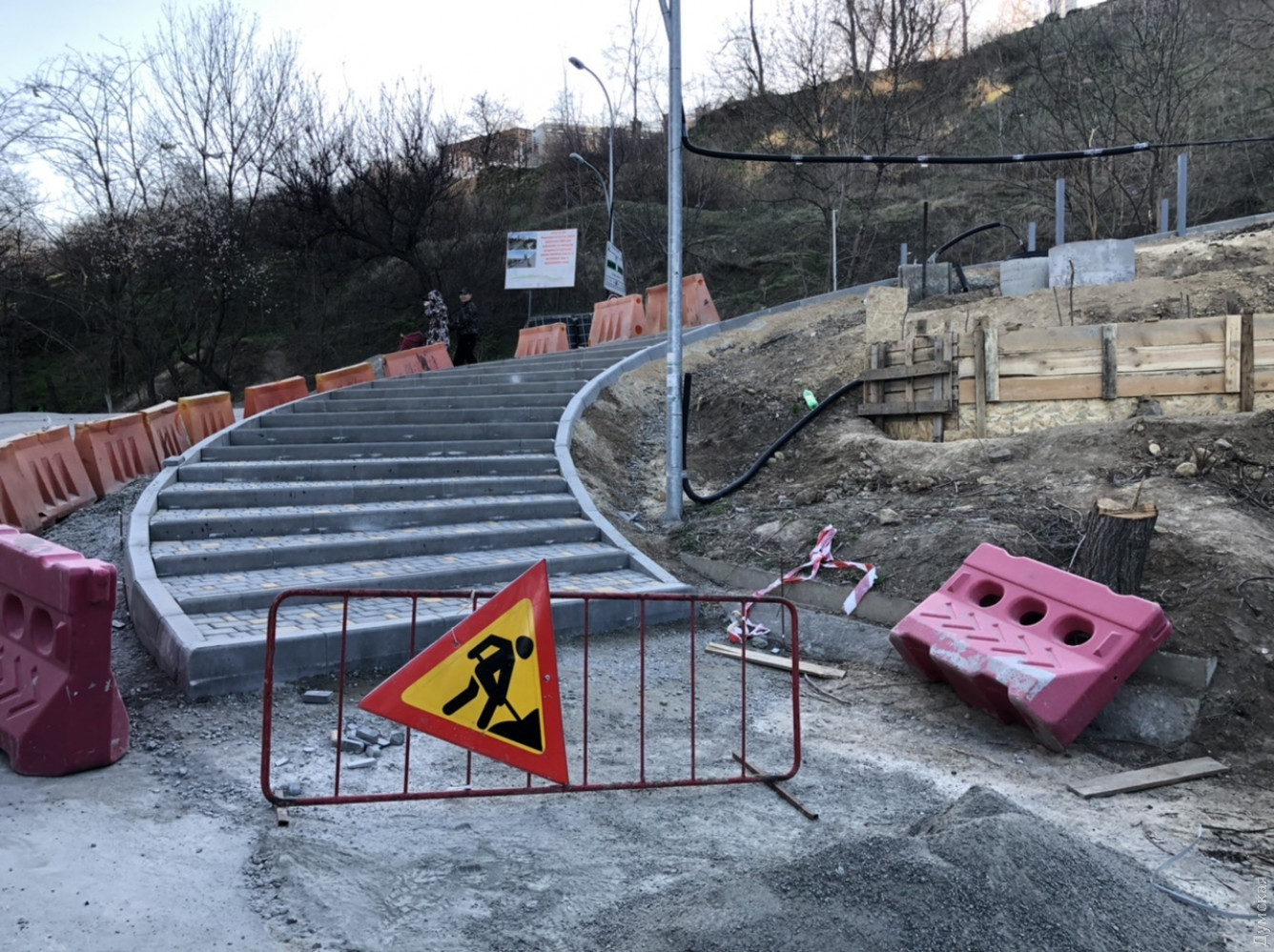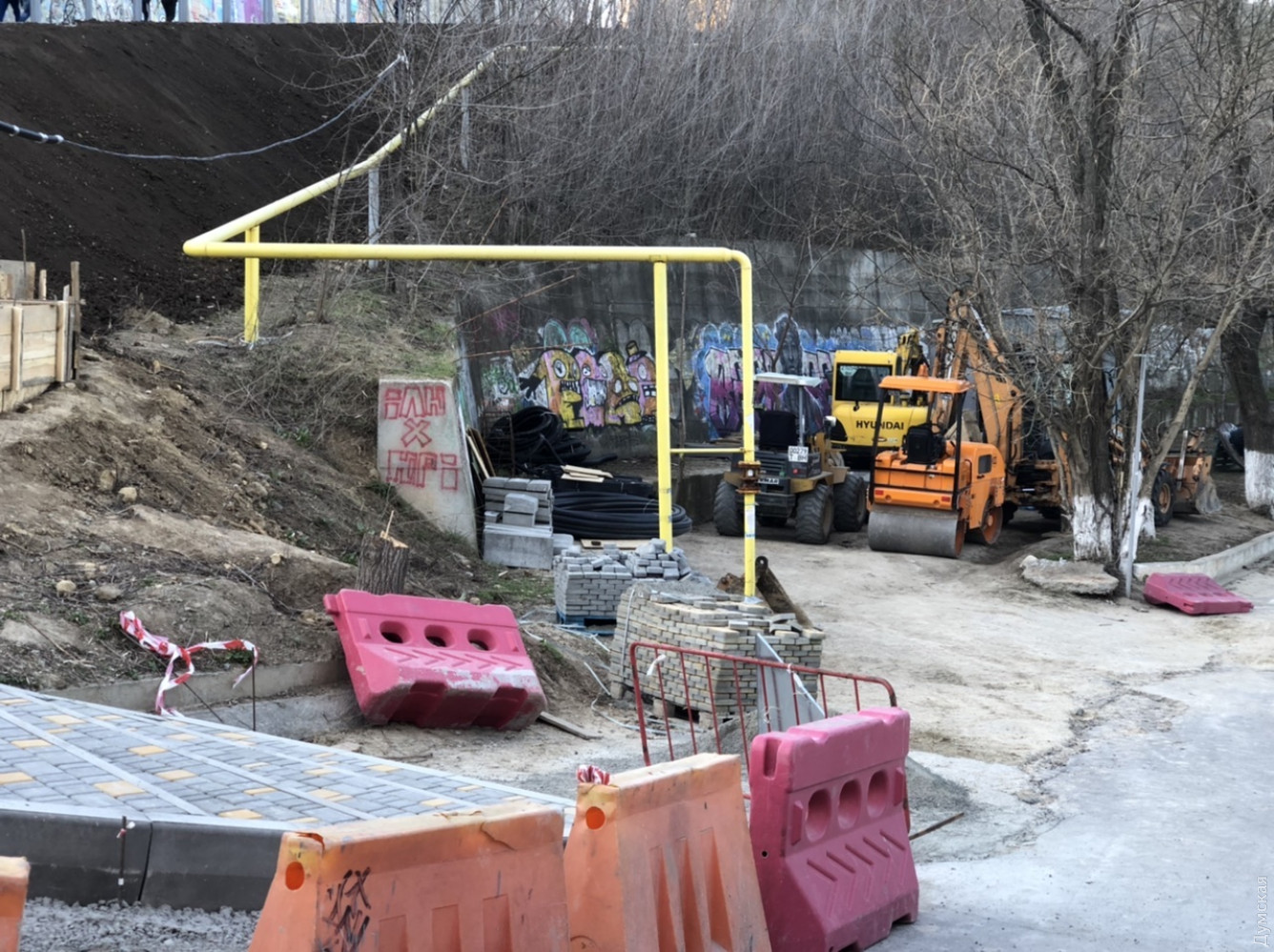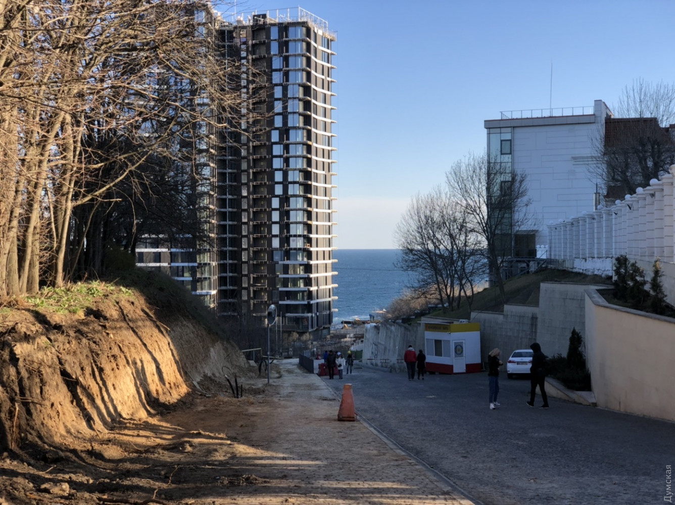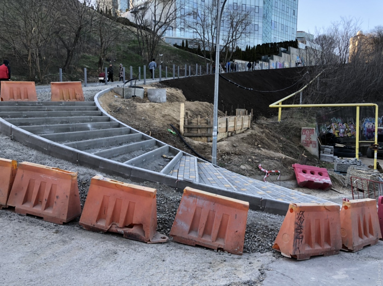 Строители высотного жилкомплекса в Аркадии, под бывшим санаторием «Россия», начали реконструировать спуск с Французского бульвара.