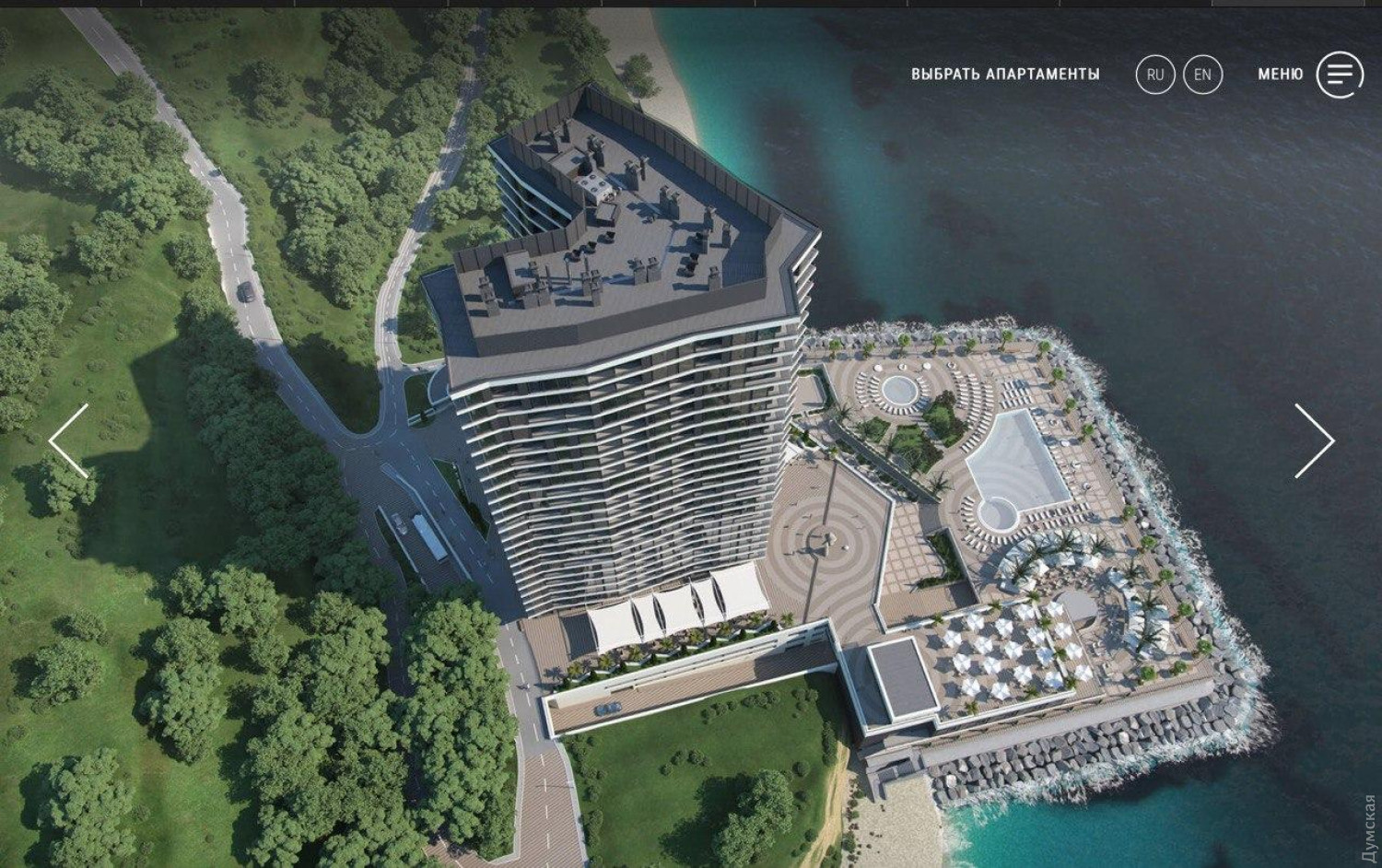 Строить высотку с собственным искусственным полуостровом начала в 2008 году фирма «Хай-Райз Констракшнз» (принадлежит бывшему депутату горсовета Владимиру Рондину).