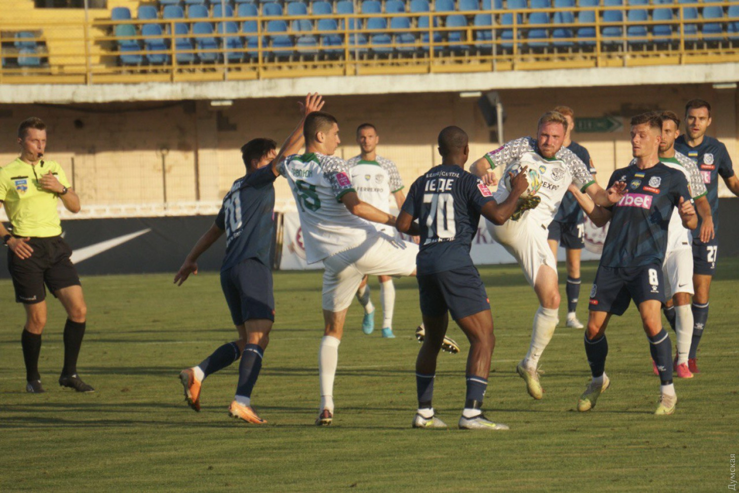 Прикра поразка в Полтаві: одеському «Чорноморцю» зовсім трохи не вистачило для позитивного результату«Чорноморець» програв полтавській «Ворсклі» з рахунком 2:1. Моряки пропустили двічі в першому таймі, швидко забили в другому але не більше. Уже перша атака «Ворскли» принесла господарям успіх. Руслан Степанюк пройшов лівим флангом і точно пробив у дальній кут воріт Олексія Шевченка. «Чорноморець» багато володів м'ячем, але моменти переважно створював після стандартів від Ореста Кузика. Саме після штрафного, але вже від Олександра Васильєва, гості ледь не зрівняли рахунок — Ісенко відбив м'яч перед собою, але Штогрін і Єрмаков не поділили підбір. Остання хвилина тайму стала насиченою на події. Господарі провели вдалу контратаку, яку результативним ударом завершив Владлен Юрченко, 2:0. До перерви одесити могли забити гол у відповідь. Самсон Ієде впав у штрафному майданчику, однак суддівська бригада не побачила підстав для пенальті. На другий тайм Роман Григорчук змінив двох гравців і тактичну побудову. Орест Кузик та Андрій Штогрин грали латералів, Артур Авагімян вийшов допомагати Самсону. І початок половини вийшов ураганним від моряків. З ударом Штогрина після блискучої атаки впорався Ісенко. А гол одеситам принесла комбінація правим флангом Кузик-Васильєв-Ієде. Не без допомоги рикошетів м'яч опинився у воротах «Ворскли». Гості не збавляли обертів, чимало загострювали Кузик, Шпорн, Єрмаков і Авагімян. Додали у швидкості Вакула та новачок команди бразилець Дада. Було відчуття, що моряки дотиснуть суперника. Але не вистачило зовсім трохи. Арбітр навіть не дав дограти 4 додану хвилину, а фінальний свисток зупинив чергову атаку «Чорноморця». Поразка 1:2. Наступний матч одесити проведуть на виїзді проти «Вереса» 1 вересня. Помітили помилку? Виділяйте слова з помилкою та натискайте control-enter Новини по цій темі: 21 червня 2024: Євро-24: збірна України здобула першу перемогу на турнірі, здолавши збірну Словаччини 17 червня 2024: Єврошок: збірна України з футболу стартувала з нищівної поразки на Чемпіонаті Європи 16 червня 2024: Гравець одеського "Чорноморця" у складі олімпійскої збірної України з футболу отримав золото престижного турніру |
