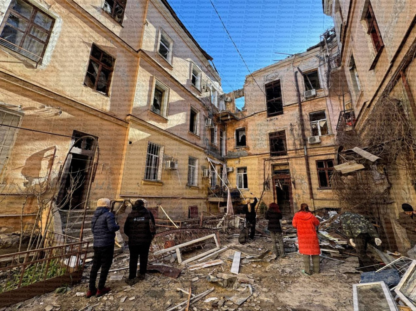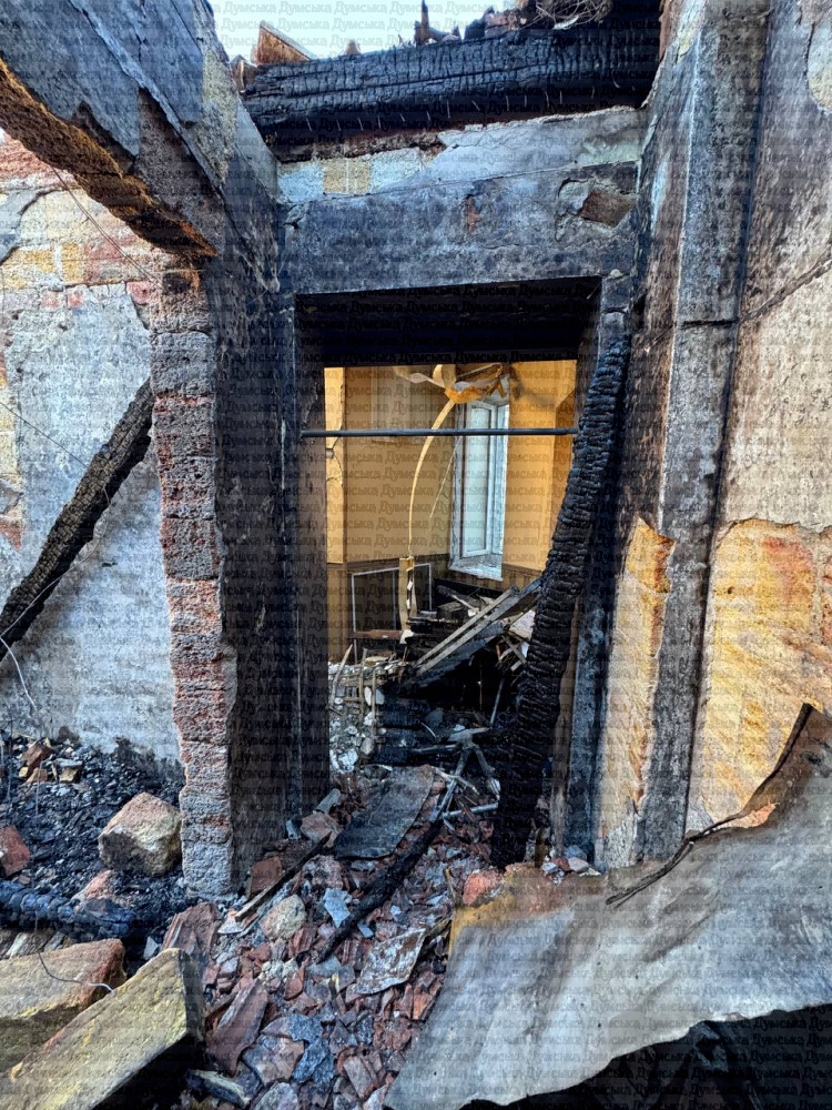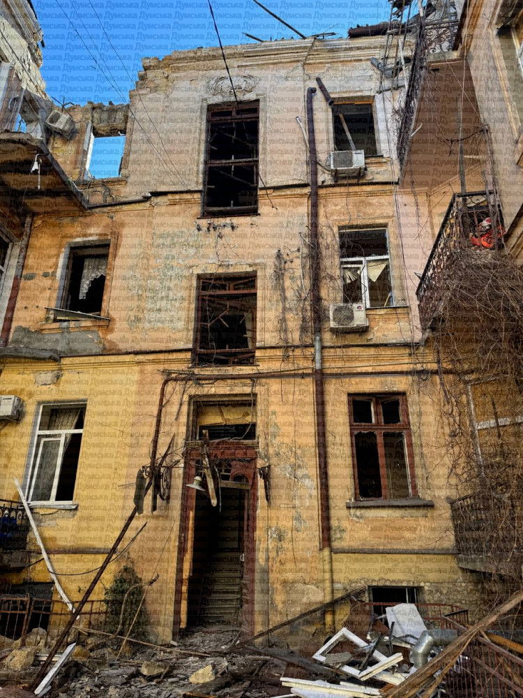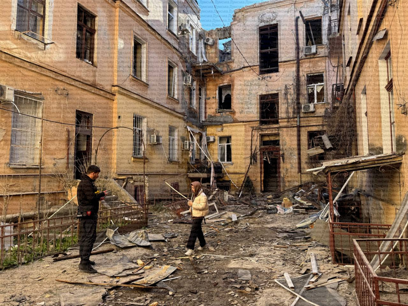 "Было очень страшно. Мы с детьми легли спать. Ко мне еще пришла кума. Мы слышим, что летит. И приближается. Побежали в коридор. Взрыв. Окна вылетели, потому что были закрыты на защелку. Ко мне все соседи начали приходить. И до 5 утра мы были у меня". Все, что осталось от квартир людей в историческом доме в центре города.