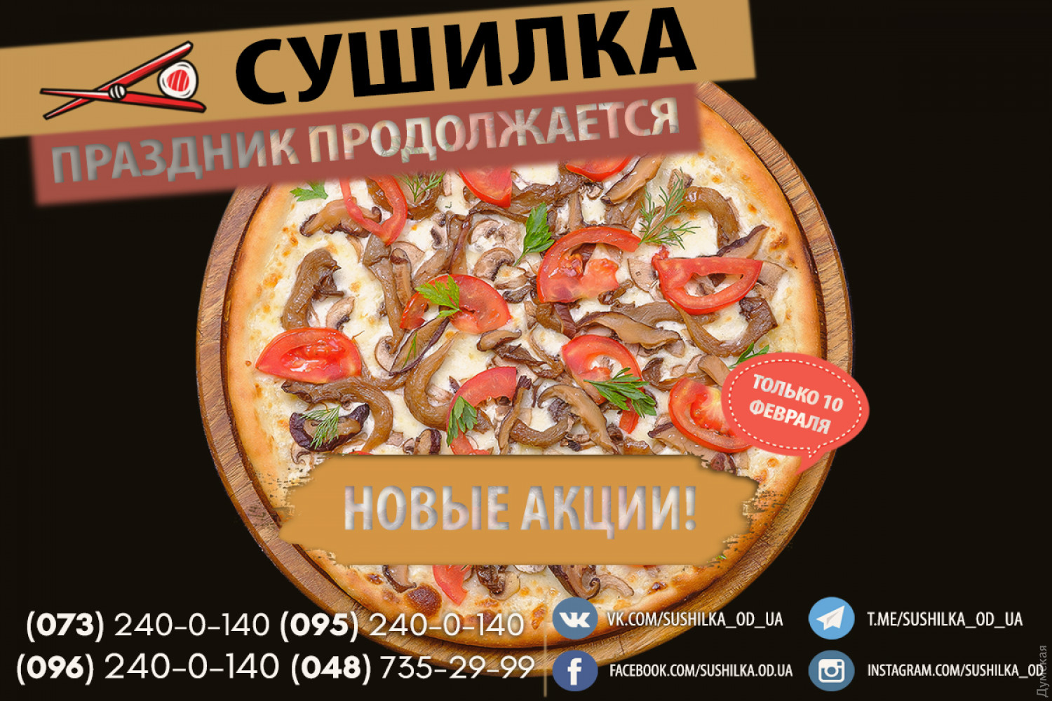 Сервис доставки еды «Сушилка» поздравляет всех горожан с прошедшими праздниками и анонсирует новые акции, чтобы скрасить для своих клиентов возвращение к рабочим будням. Так, при заказе роллов на сумму от 300 гривен предоставляется до 60% скидки на роллы Ичиби, Калифорния Унаги, Калифорния Сяке или Сяке Чили. А при заказе сета Калифорния одну из трех вкуснейших пицц сервиса можно заказать по цене всего 49 грн. Подробнее ознакомиться с условиями акции, которые действуют до 10 февраля включительно, можно в соответствующем разделе на сайте sushilka.od.ua. Напоминаем, что «Сушилка» открыла бургерный филиал, где представлены разнообразные салаты, закуски и, разумеется, бургеры. Заказ можно сделать на сайте sushilka.od.ua, или по телефонам: 073-240-0-140; 095-240-0-140; 096-240-0-140; 048-735-29-99. СМЕРТЬ РОСІЙСЬКИМ ОКУПАНТАМ! Помітили помилку? Виділяйте слова з помилкою та натискайте control-enter |