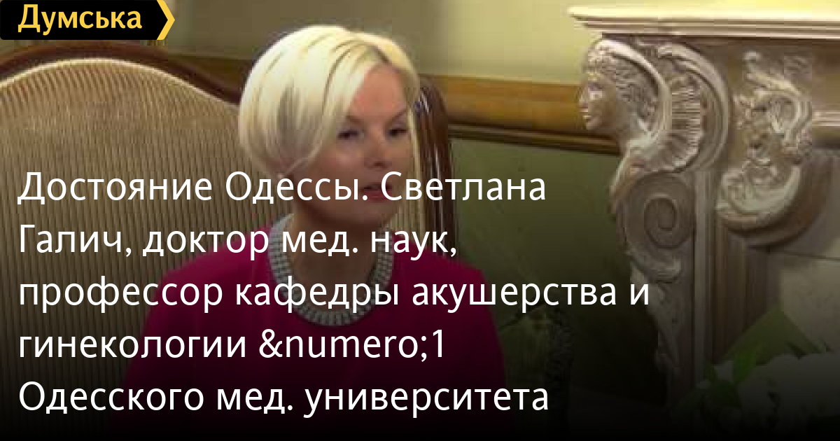Достояние Одессы. Светлана Галич, доктор мед. наук, профессор кафедры акушерства и гинекологии №1 Одесского мед. университетаСМЕРТЬ РОССИЙСКИМ ОККУПАНТАМ! Заметили ошибку? Выделяйте слова с ошибкой и нажимайте control-enter Думская ТВ. Достояние Одессы: