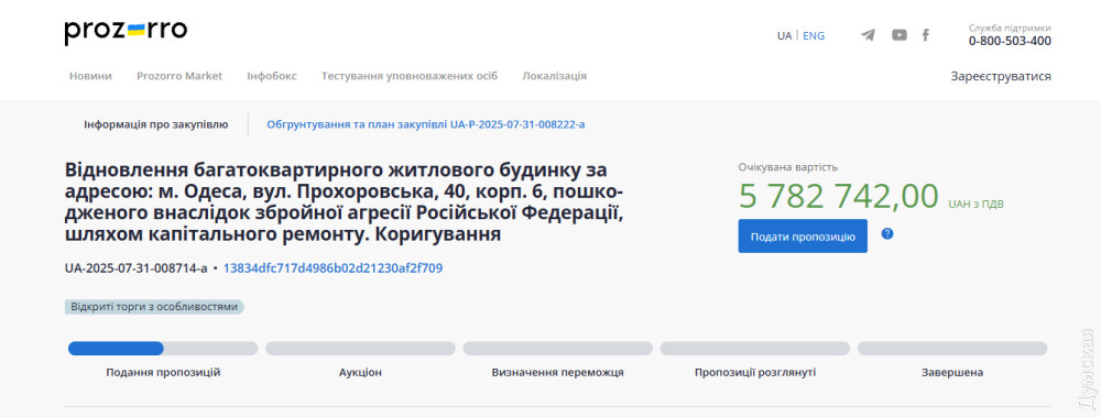 Дочекалися: будинок на одеській Молдаванці почнуть відновлювати через півтора роки після прильотуПостраждалий будинок на вулиці Прохорівській, 40, куди 24 січня 2024 року влучив ворожий дрон, відновлять за 5,7 млн гривень. Департамент міського господарства міськради оголосив пошук підрядника на сайті Prozorro. Планується повний демонтаж пошкоджених зовнішніх та внутрішніх стін, монолітних перекриттів, облицювання з цегли, вікон і дверей. Будівельники мають також очистити арматуру та вивезти 12 тонн будівельного сміття. Крім того, передбачено укріплення несучих конструкцій, зведення нових стін з газобетонних блоків та монтаж перекриттів. У будинку встановлять нові металопластикові вікна, міжкімнатні та протипожежні двері, виконають комплекс внутрішніх оздоблювальних робіт — включно з монтажем гіпсокартонних перегородок, улаштуванням стель і підлог, а також фарбуванням приміщень. Частину коштів виділять і на відновлення інженерних систем з 14 по 16 поверхи: опалення, вентиляції, електромереж, каналізації, пожежної сигналізації. Виконати усі ці роботи мають до 31 грудня 2026 року. Нагадаємо, в результаті атаки безпілотника на 15-му поверсі стався вибух, були суттєво пошкоджені декілька квартир, але за весь цей час жодних робіт тут не проводили. «Думська» вже писала про те, що у березні мешканці обговорили з заступниками міського голови та депутатами міськради плани щодо відновлення корпусу. Тоді з'ясувалось, що в мерії спочатку не збиралися виділяти бюджетні кошти на ремонт будинку, а намагалися знайти інвесторів. Однак проєкт, розміщений у листопаді минулого року на платформі електронної системи управління відновленням DREAM, не отримав фінансової підтримки. СМЕРТЬ РОСІЙСЬКИМ ОКУПАНТАМ! Помітили помилку? Виділяйте слова з помилкою та натискайте control-enter |
