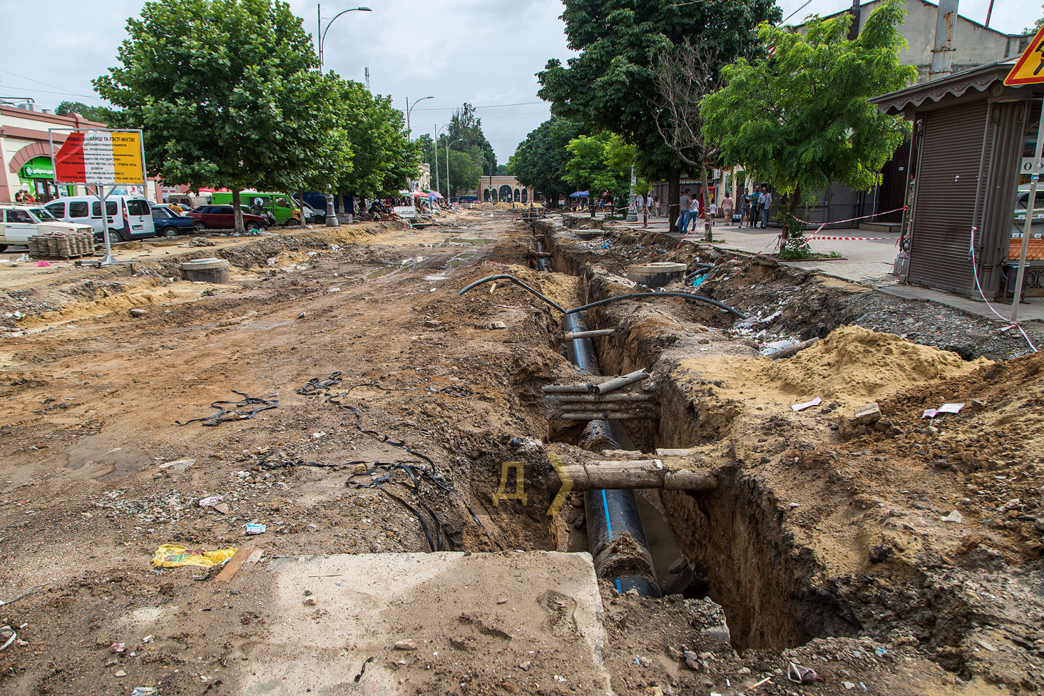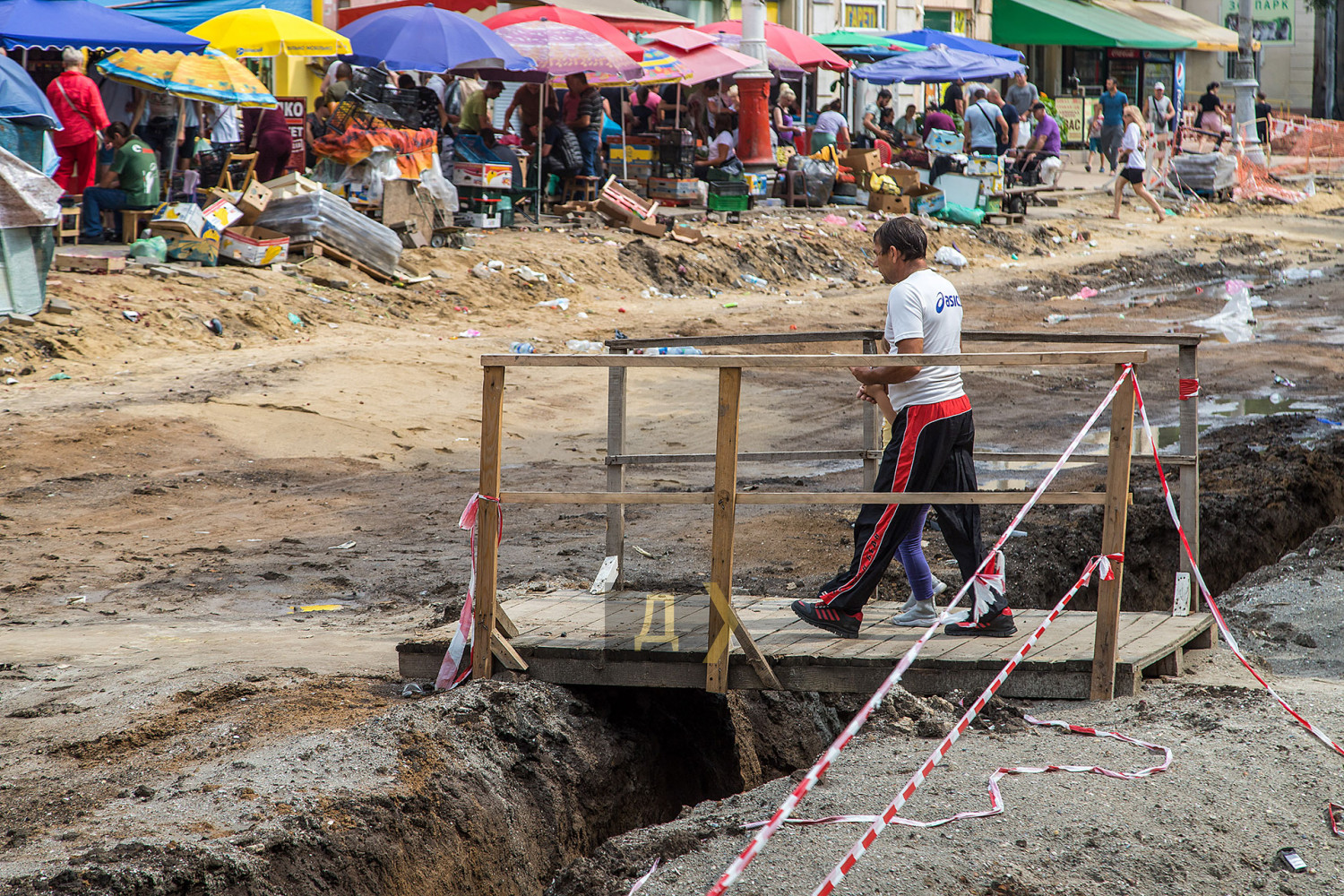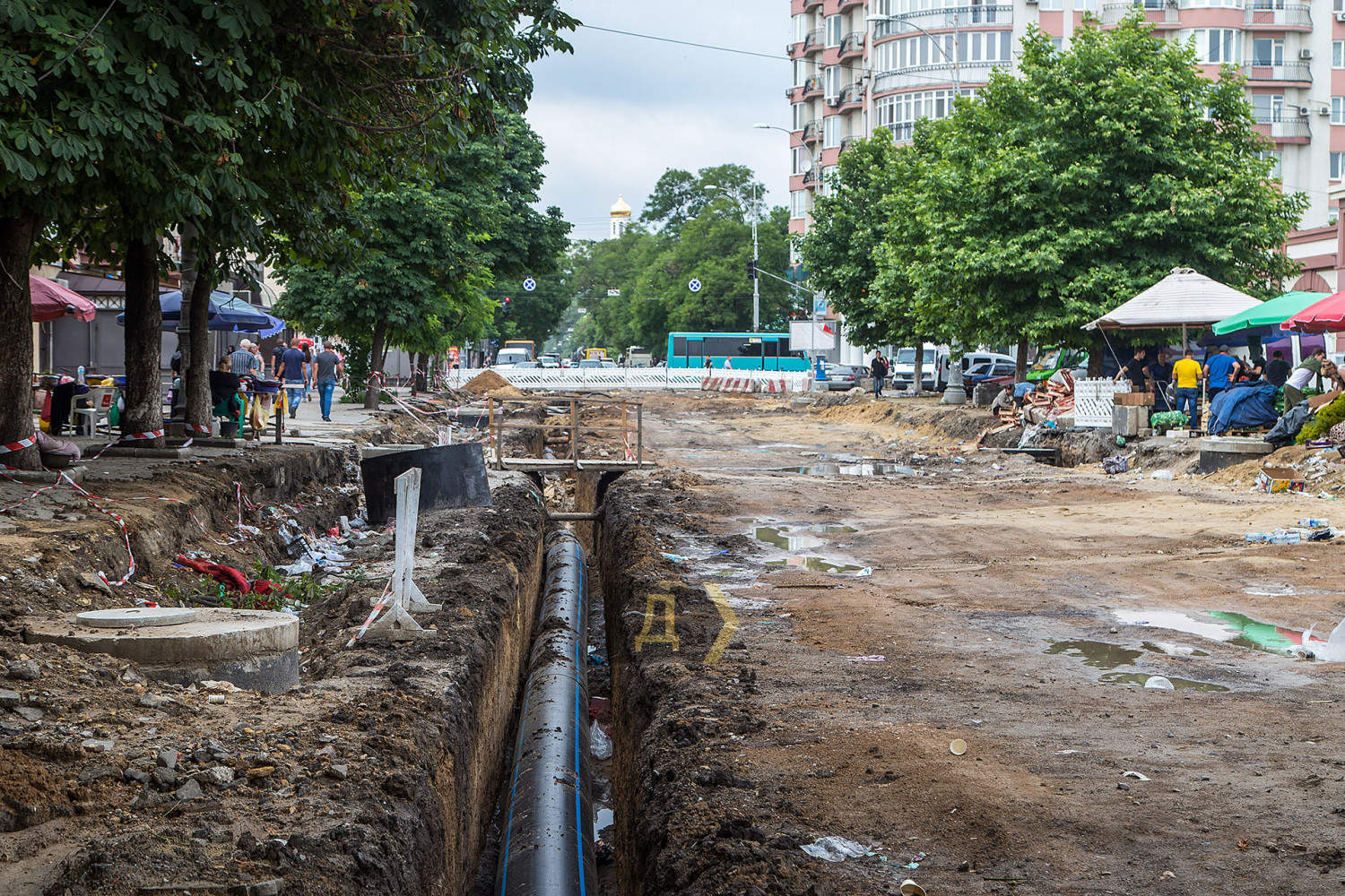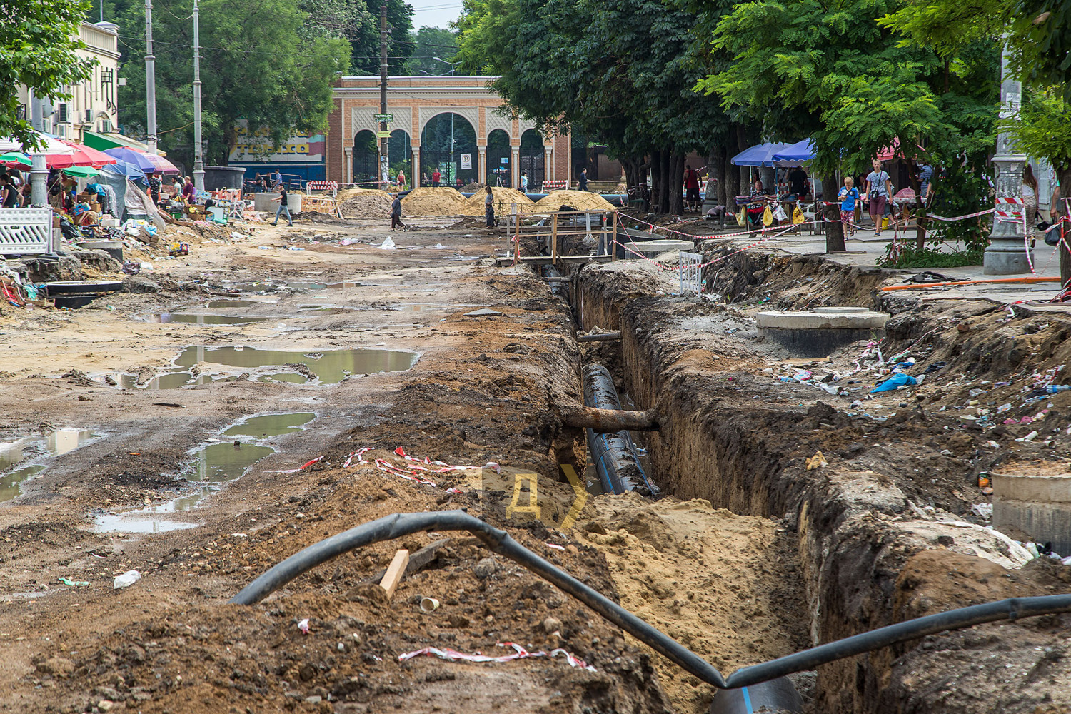 Дожди мешают работам на ремонтируемом участке Преображенской в районе Привоза