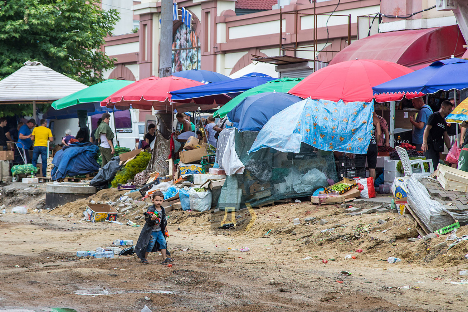 Ливень серьезно подтопил ремонтируемый участок улицы Преображенской в районе Привоза.