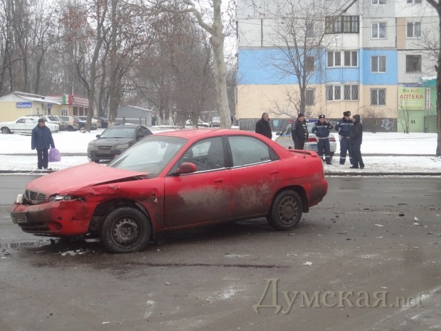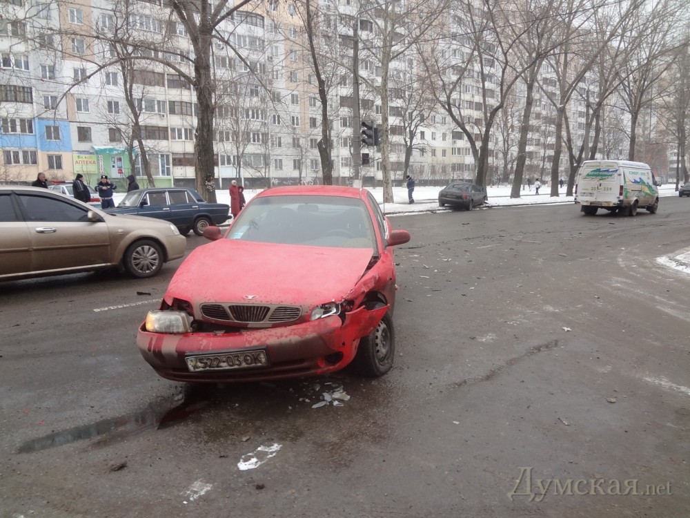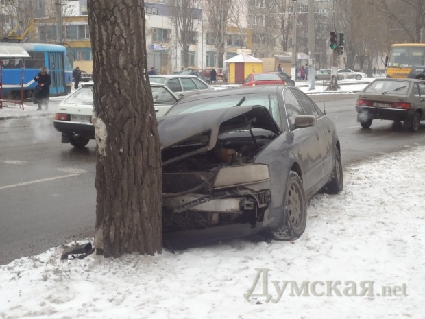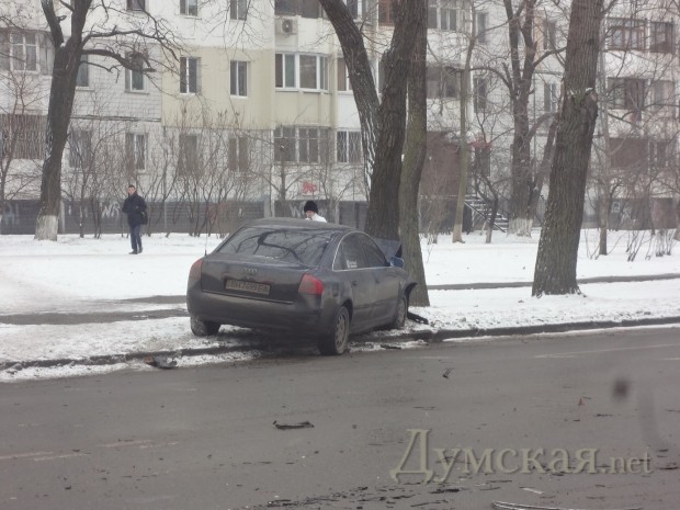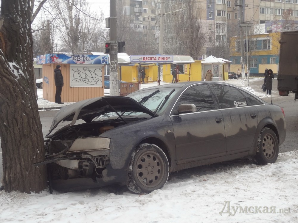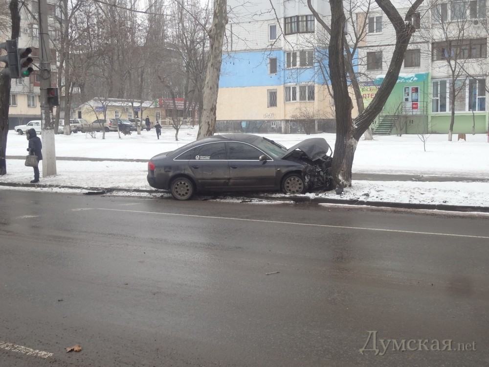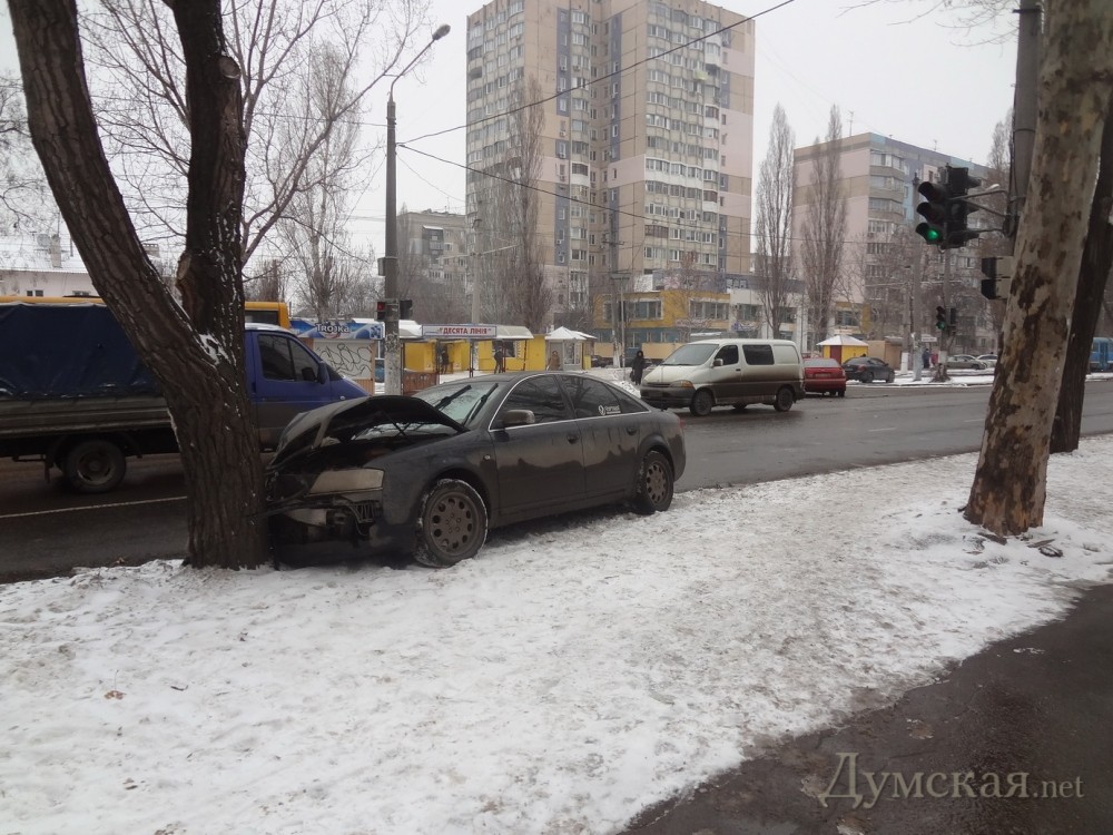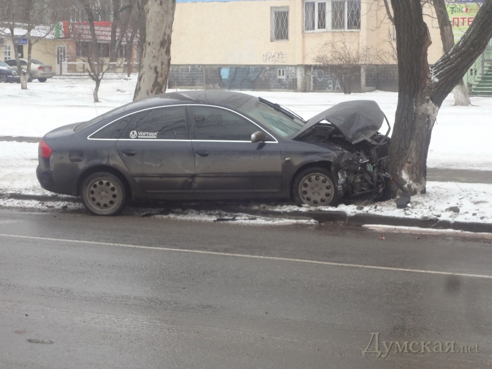 ДТП на Добровольского. Иномарка столкнулась с «ДЭУ» и въехала в дерево (Фото)