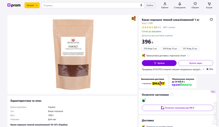 Но «вишенка на торте» — это какао. Компания поставит его по 962,50 грн за килограмм. Общая сумма за 200 кг — 231 тыс грн. Это при том, что заявленный какао-порошок (12%) на рынке стоит 396 грн. Чтобы вы понимали масштаб: в это же время отдел образования в Дмитровке на Кировоградщине закупает такое же какао ровно в два раза дешевле — по 450 грн.