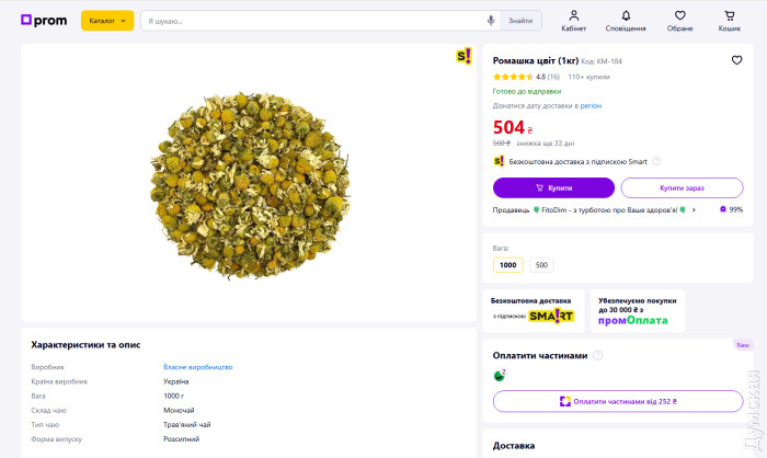 Ромашковый чай тоже стал элитным напитком: его закупили 20 кг по 867,50 грн за кг при рыночной стоимости в 504 грн.