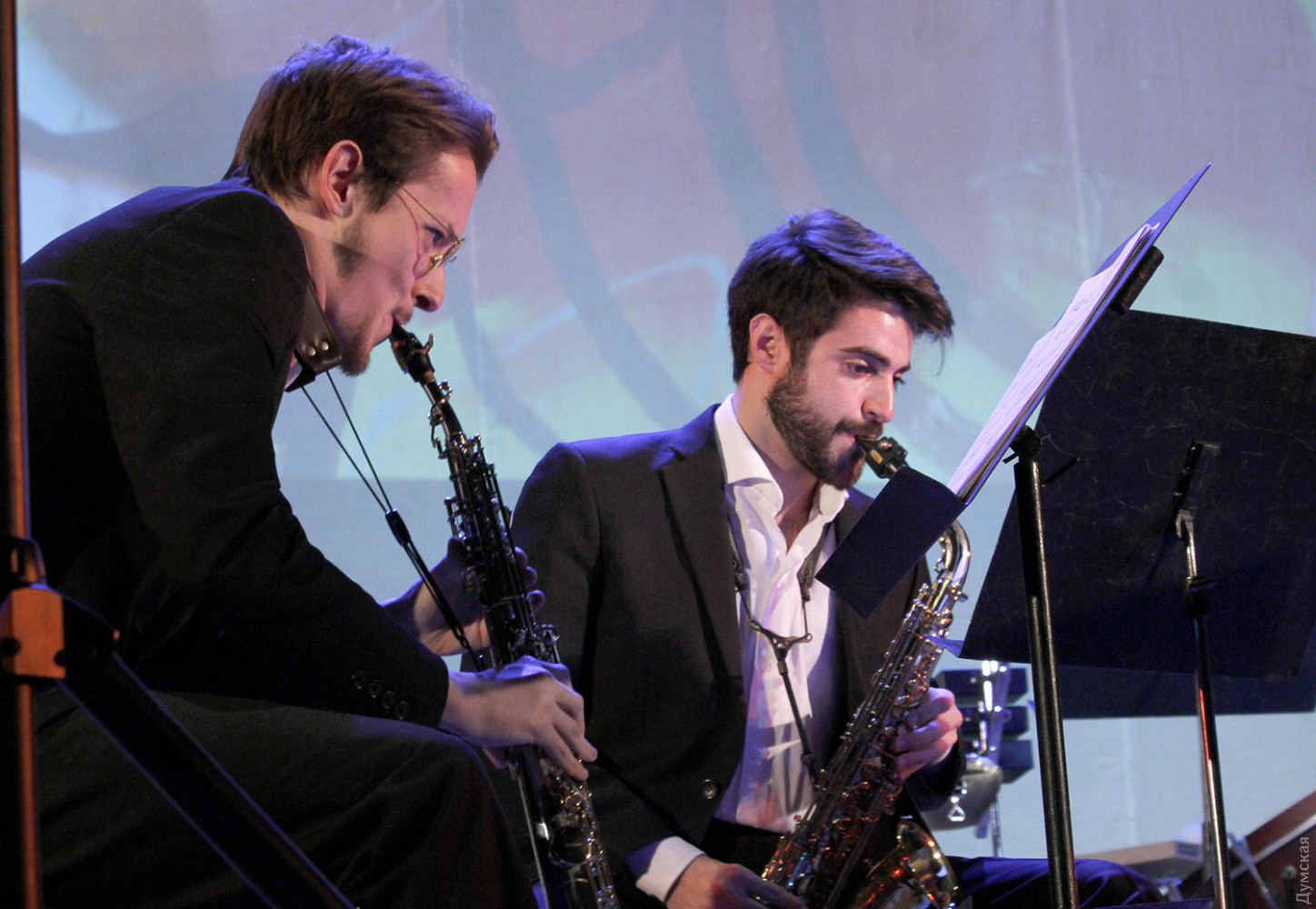 Первые четверть века 25-й международный фестиваль современного искусства «Два дня и две ночи новой музыки» отметил головокружительными концертами в Одесской филармонии в режиме нон-стоп. Феерически выступали перкуссионисты из Фрайбурга, Базеля, Лугано – звучит все, от традиционных барабанов и литавр до пивных данок и обычных столов, по которым ритмично постукивают музыканты. Девушки-музыканты щеголяли на открытии в расписных платьях от Владимира Уманенко, а бессменный президент фестиваля, профессор Бернхард Вульф привел шарманщика, ведь в эпоху электроники так приятно послушать что-то раритетное! В рамках как «2Д2Н», так и фестиваля «Французская весна в Украине» выступил ансамбль Alternance, и одним из самых ярких номеров была пьеса «Отпечатки пальцев» Владимира Рунчака – напомним, что все иностранные участники обязательно разучивают произведение украинского композитора. И это продолжается уже 25 лет, вот и выходит, что Одесса сделала весьма многое для пропаганды и продвижения отечественного искусства. Сменяли друг друга на сцене литовское медное духовое трио «Сонум», испанский квартет саксофонов Psaiko, перкуссионный дуэт музыкального университета Лугано (Альберто Токкачелли и Рина Фукуда), швейцарский ансамбль Soyuz21. Одесский ансамбль Senza Sforzando, аккомпанировал австрийскому бас-баритону Руперту Бергманну в блоке мини-моно-опер. Обожающий петь босиком Руперт перевоплощался не только в библейского пророка («Зов Моисея» Цветы Димитровой) или в оперного солиста, репетирующего Мусоргского («Сегодня вечером – «Борис Годунов» Кармеллы Цепколенко), но даже в коалу, змея, ворону и чижа, а также прочую живность в операх молодых композиторов, объединенных идеей «Музыкальный зоопарк». Одесская пианистка Марина Перепелица тоже оказалась в тренде, сделала концертный педикюр под цвет рояля и выступила босиком с пьесой Алексея Суровых «Медитации». В исполнении «Орестеи» Александра Козаренко участвовали актеры Татьяна Сторожук, Лидия Данильчук и Олег Деркач, читавшие строки Эсхила в переводе Андрея Содоморы. Не музыкой единой — все два дня и две ночи рождалась на глазах публики картина американского художника Миши Тютюнника. Американский скрипач Дан Ауэрбах дал перед фестивалем блестящий мастер-класс в музыкальной академии имени Неждановой, выступал в Филармонии как соло, так и в дуэте с пианисткой Саяка Такахаси. Абсолютным рекордсменом оказался композитор Антон Ровнер (США-Россия) – Дан и Саяка исполнили на фестивале четыре его произведения! Самой необычной мини-оперой оказался «Лифт» Людмилы Самодаевой на либретто Эллы Леус. Одесский бас-баритон Андрей Малинич пел и за своего персонажа, прошедшего ряд сложных реинкарнаций механизма, и за полюбившуюся ему девушку Алю (в последний момент сопрано не смогла принять участие в фестивале, и Андрей, благо голосовые данные богатые и диапазон широкий, пел на все голоса). Историю влюбленного лифта одесским меломанам обязательно покажут еще! А завершились одесские «Ночи» торжеством звенящей и шелестящей перкуссии по доброй четвертьвековой традиции. Как говорится, дай Бог до ста двадцати! Автор — Ирэн Адлер, фото Владимира Андреева СМЕРТЬ РОСІЙСЬКИМ ОКУПАНТАМ! Помітили помилку? Виділяйте слова з помилкою та натискайте control-enter Новини по цій темі: 2 листопада 2025: «Амінь, і поїхали»: одеси