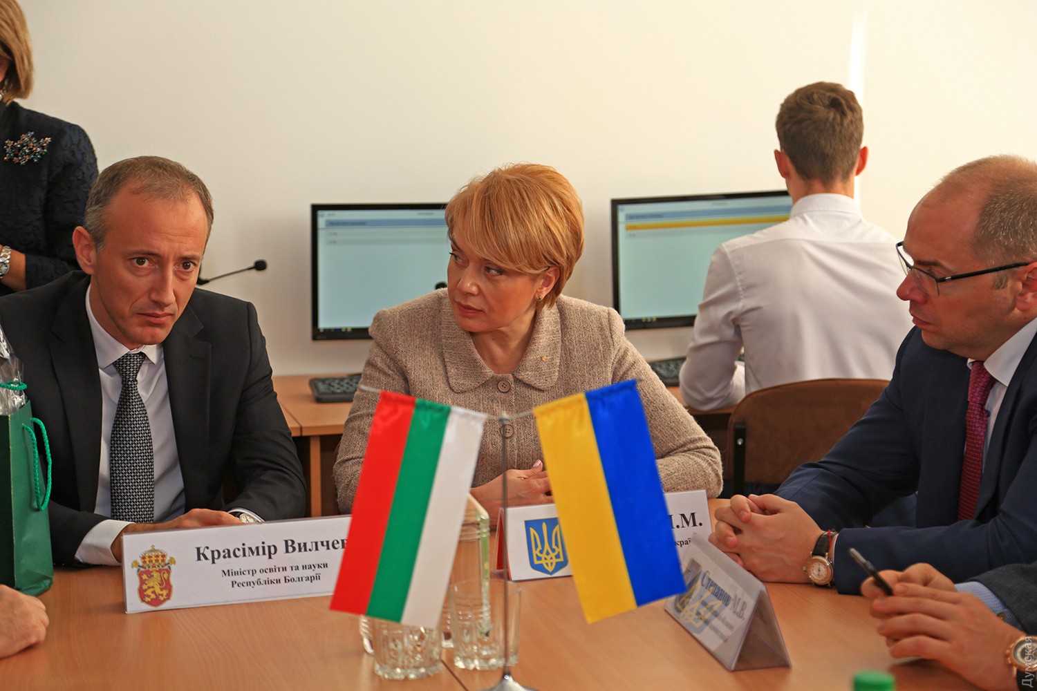 Сегодня днем в одесской общеобразовательной школе №31 открылся лингафонный кабинет для изучения иностранных языков. Оборудование предоставило Генеральное консульство Республики Болгария в Одессе. На открытие кабинета прилетели министр образования и науки Болгарии Касимир Валчев и его украинский коллега Лилия Гриневич. После традиционного хлеба и соли руководители образовательных ведомств перерезали красную ленту на входе и вошли в кабинет, где состоялся короткий открытый урок английского. В лингафонном кабинете установлены 16 компьютеров с программами, обучающими языкам Евросоюза, а также «умная» доска — большой сенсорный экран. В этом году школа №31, которой, кстати, исполнилось 58 лет, взяла на работу пятерых учителей болгарского языка и начала преподавать его детям. СМЕРТЬ РОСІЙСЬКИМ ОКУПАНТАМ! Помітили помилку? Виділяйте слова з помилкою та натискайте control-enter |