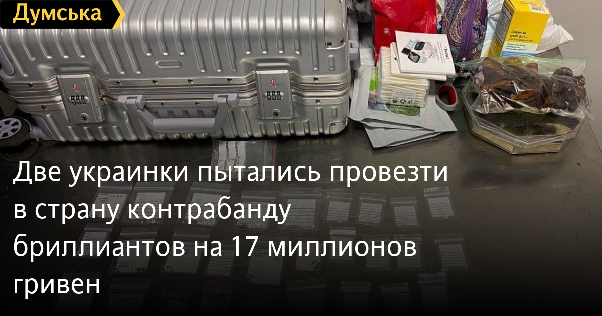 Две украинки пытались провезти в страну контрабанду бриллиантов на 17 миллионов гривенСБУ обнаружила крупную партию бриллиантов в Международном аэропорту «Борисполь». Как сообщили в пресс-службе ведомства, оперативники спецслужбы получили информацию, что драгоценности собираются ввезти две украинки, которые возвращались домой из одной из стран Ближнего Востока. Правоохранители обнаружили в личных вещах женщин 38 пакетов с бриллиантами весом более 50 граммов. Ориентировочная стоимость драгоценностей — почти 17 миллионов гривен. Сейчас составляется протокол о нарушении таможенных правил, бриллианты изъяты правоохранителями. СМЕРТЬ РОССИЙСКИМ ОККУПАНТАМ! Заметили ошибку? Выделяйте слова с ошибкой и нажимайте control-enter |
