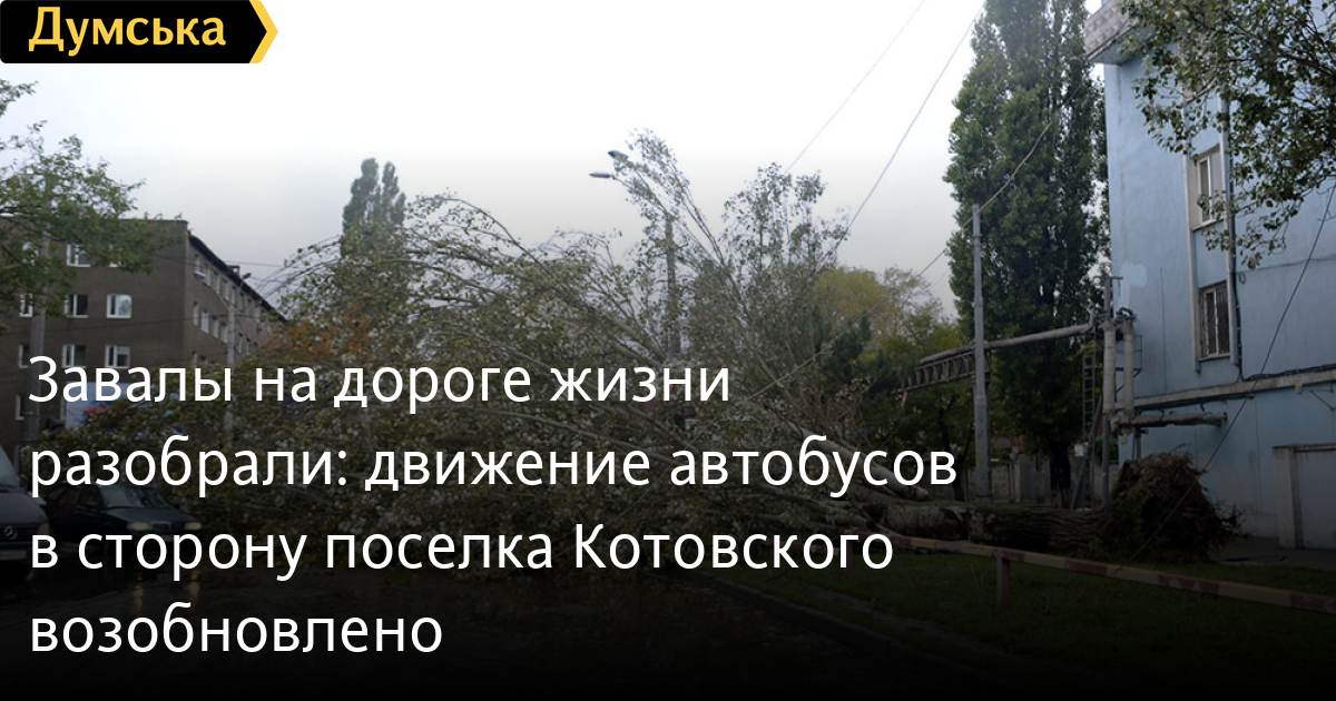 Завалы на «дороге жизни» разобрали: движение автобусов в сторону поселка Котовского возобновленоДорогу в сторону поселка Котовского, которая была перекрыта поваленными деревьями, разблокировали. Как сообщает муниципальный департамент транспорта, на поселок уже ходят автобусы №№ 120, 130, 137, 145, 168, 232, 242, 240, 250. Электротранспорт из-за многочисленных обрывов сети в этом направлении пока не ходит. СМЕРТЬ РОСІЙСЬКИМ ОКУПАНТАМ! Помітили помилку? Виділяйте слова з помилкою та натискайте control-enter |