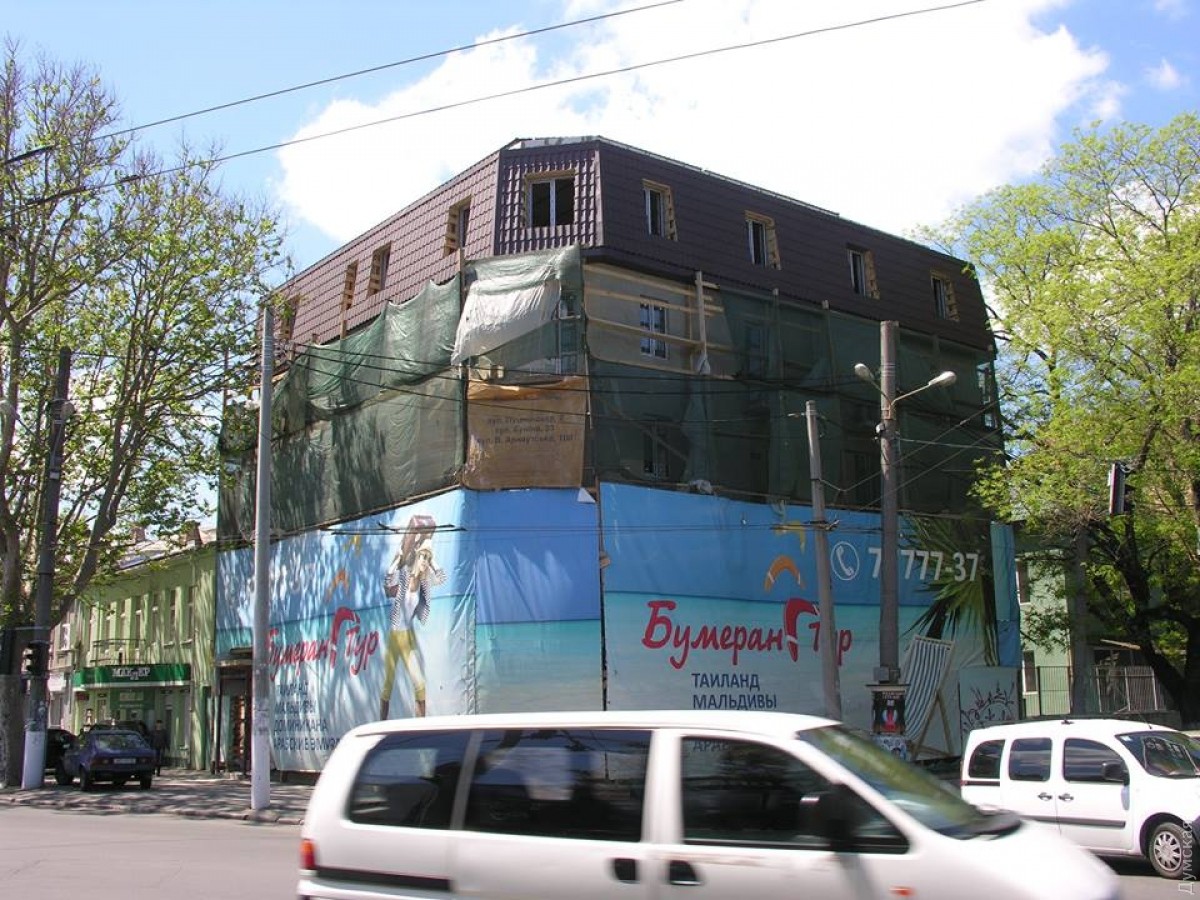 Своеобразный рекорд поставили реконструкторы двухэтажного дома на углу Мечникова и Богдана Хмельницкого, напротив памятника великому гетману. Недавно на нем достроили сразу четыре новых этажа, превратив аккуратный домик в неуклюжую громадину. Фото Олега Коваленко СМЕРТЬ РОСІЙСЬКИМ ОКУПАНТАМ! Помітили помилку? Виділяйте слова з помилкою та натискайте control-enter |