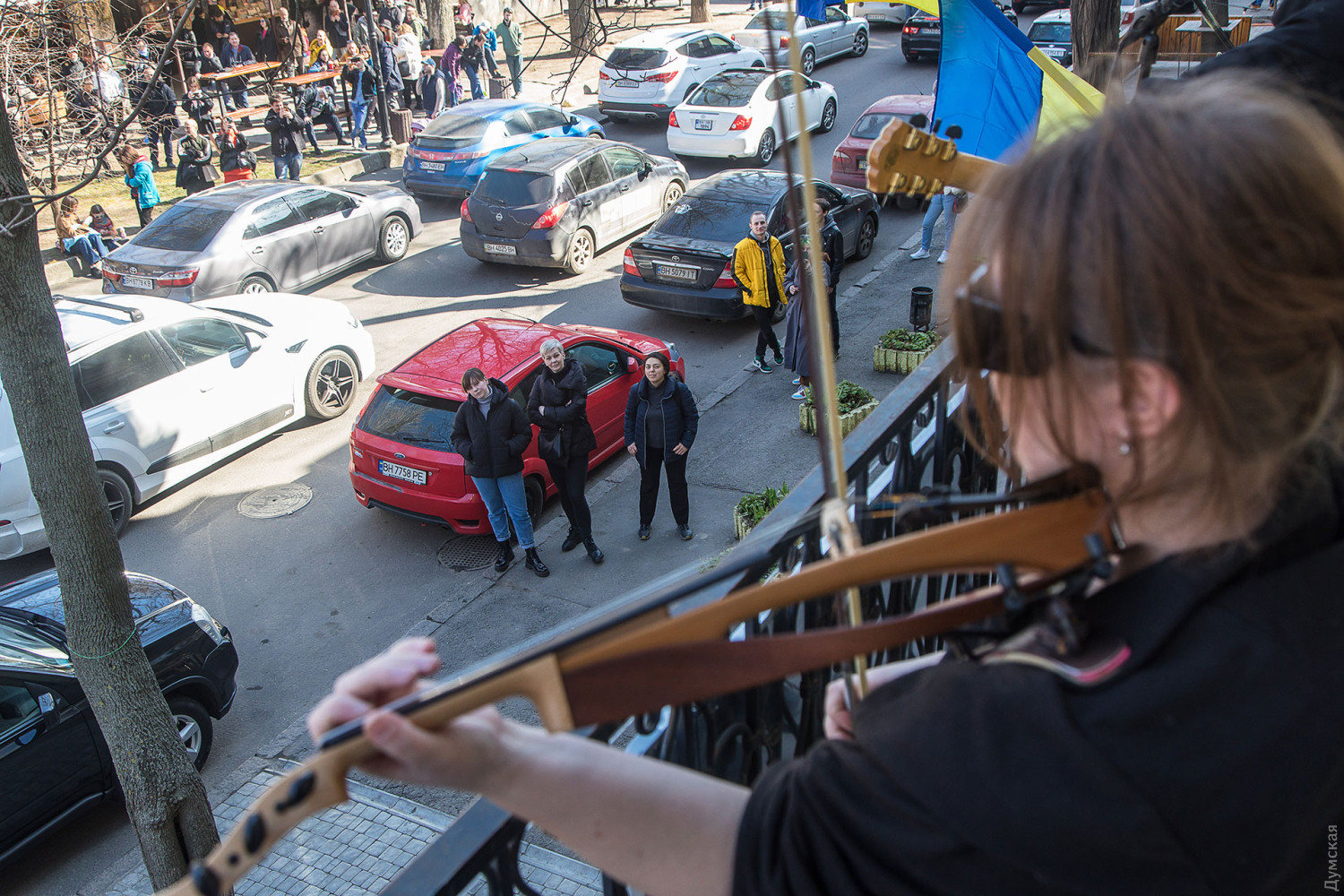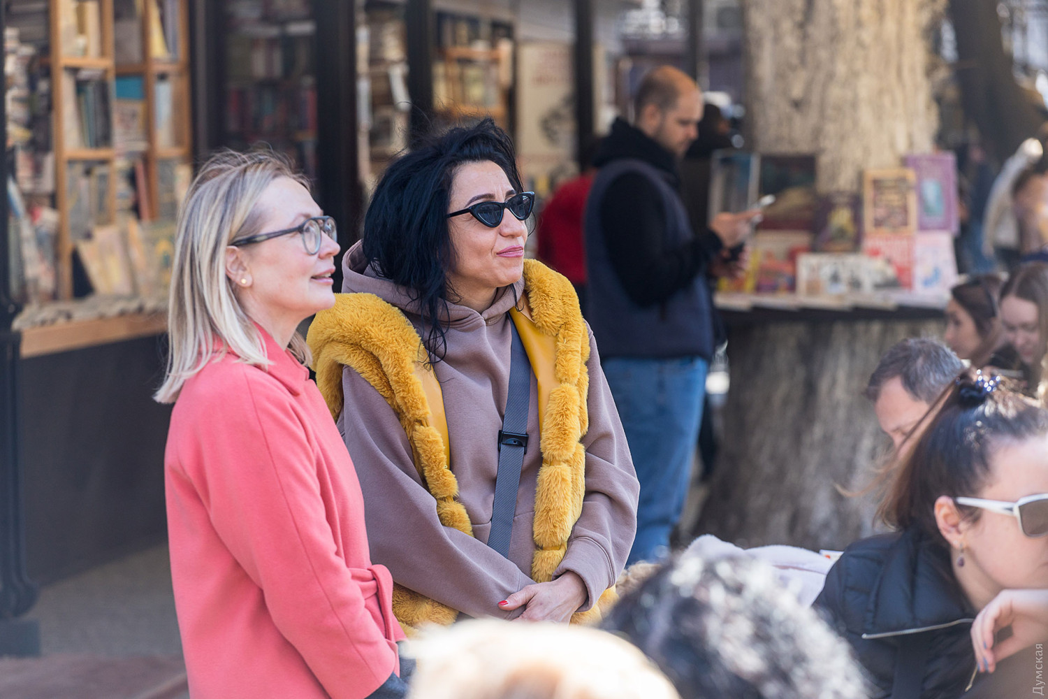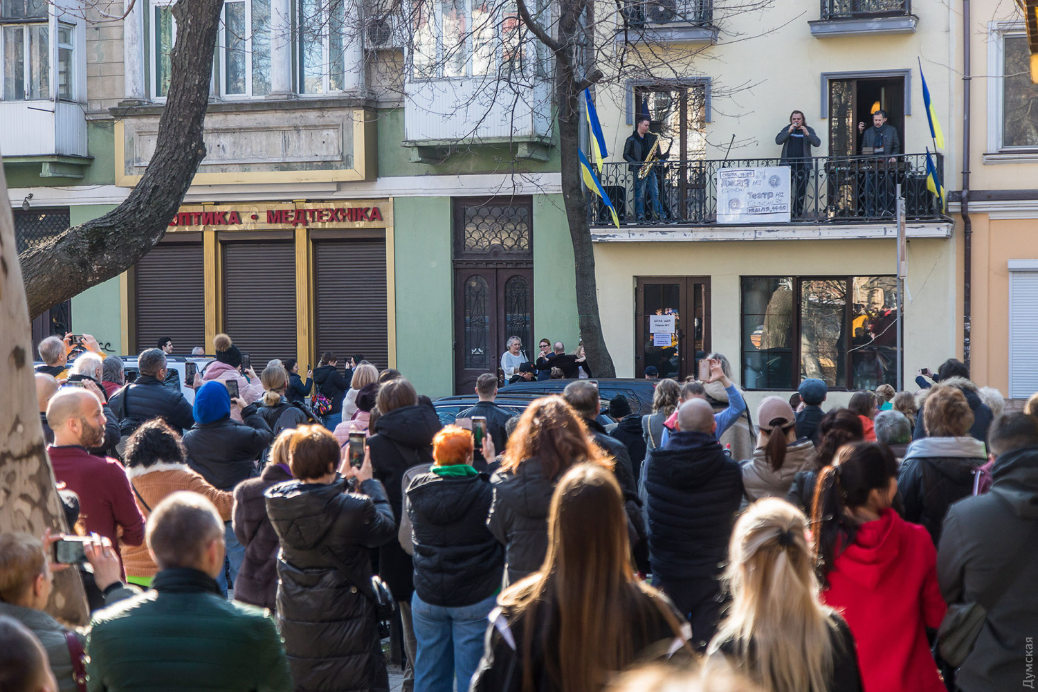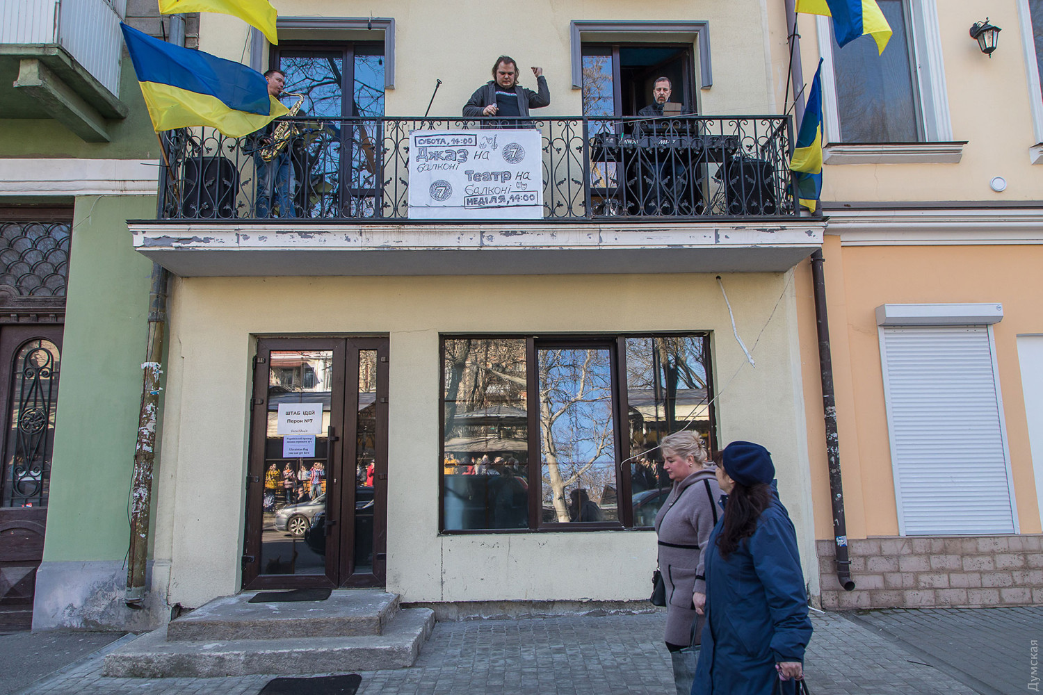 Джаз на балконе: возле легендарной «Книжки»: одесские музыканты играли и пели прямо из окон театраНеобычный концерт прошел вчера днем возле легендарного одесского рынка «Книжка», что на Александровском проспекте. Сценой для выступления одесских музыкантов стали балконы театра «Перрон №7», в доме под 16-м номером, а зрительным залом – собственно книжный базар, который с трудом смог вместить всех желающих насладиться выступлением. С балкона звучали джазовые и блюзовые стандарты от трио Ярослава Трофимова и дуэта Авелины Цеховаловой и Александра Ковалева, сатирический фольклор и современный городской романс от Александры Лосевой и Романа Капитонова. Джазовой обработке подверглись такие известные одесские хиты, как «У Черного моря», «Шаланды полные кефали» и «Ах, Одесса – жемчужина у моря». Последний, к слову, исполнялся на государственном языке, что с восторгом восприняла собравшаяся публика. Как рассказал «Думской» создатель «Перрона №7», музыкант, певец, режиссер Ярослав Трофимов – это уже второй подобный концерт. «Мы переехали в это здание в сентябре прошлого года, — рассказывает Ярослав. – Из-за войны пришлось отменить пять спектаклей, билеты на которые были уже проданы. Большинство людей, купивших билеты, согласились, чтобы мы от их лица перевели эти деньги на помощь ВСУ. Теперь, когда наш тыловой город начинает понемногу оживать, мы решили поднять настроение и боевой дух одесситов музыкой». Концерт совпал с очередной воздушной тревогой, что, впрочем, не испугало завсегдатаев «Книжки», которая за долгие годы своей работы привыкла к разным налетам, хоть и не воздушным. Исполнители радовали одесситов своим творчеством почти два часа. Отметим, что собранные по системе free-donate средства пойдут в специальный фонд, который помогает артистам, оставшимся без средств к существованию. P.S. 27 марта в 14:00 там же, на Александровском проспекте, 16 пройдут театральные чтения. Профессиональные актеры прочтут произведения Леся Подервянского, Михаила Жванецкого, Владимира Жаботинского, Остапа Вишни и других. Автор — Александр Гиманов СМЕРТЬ РОСІЙСЬКИМ ОКУПАНТАМ! Помітили помилку? Виділяйте слова з помилкою та натискайте control-enter |