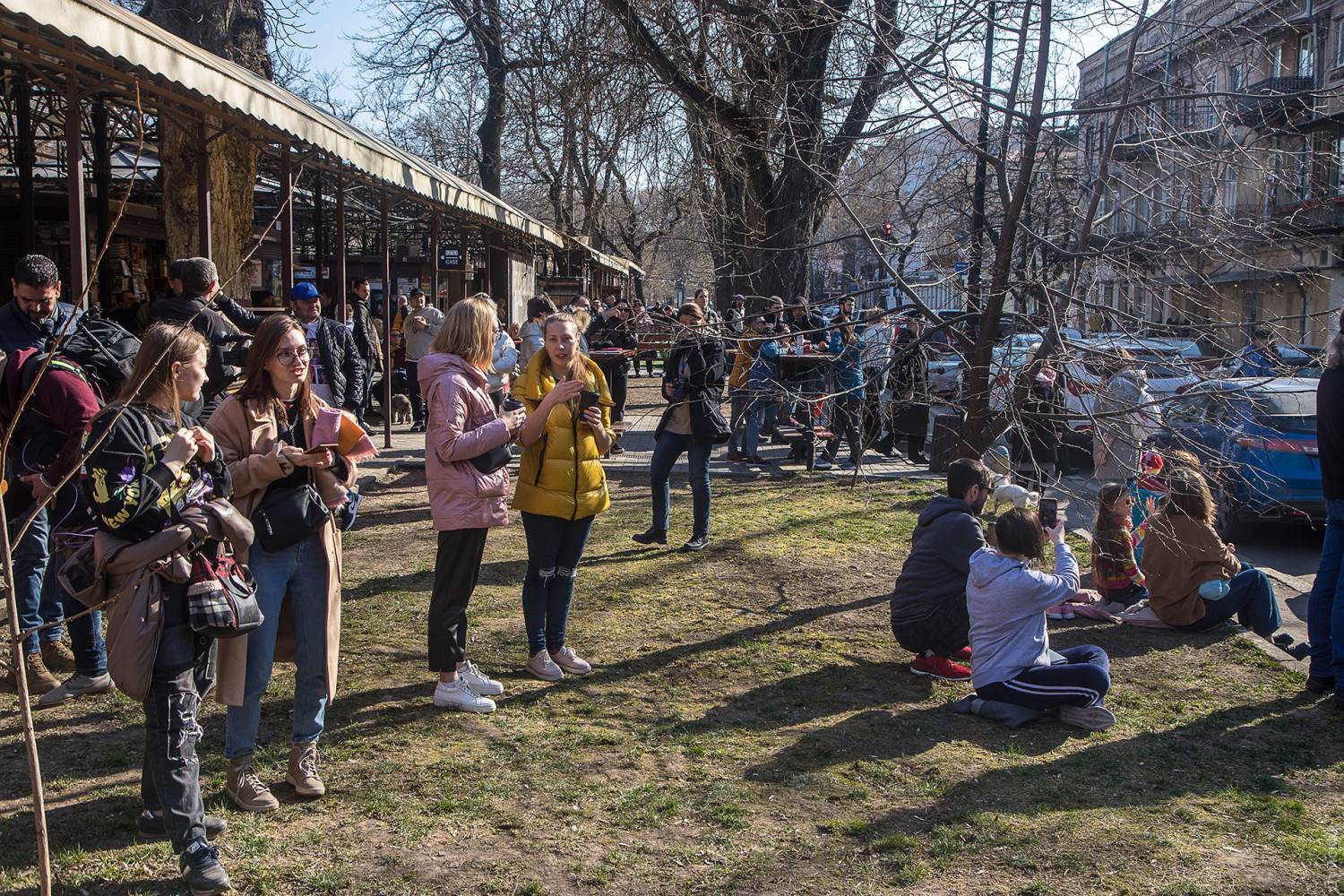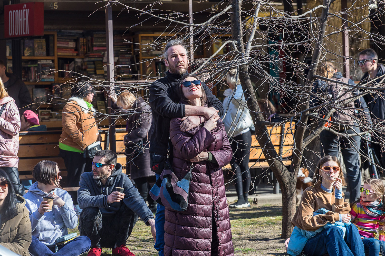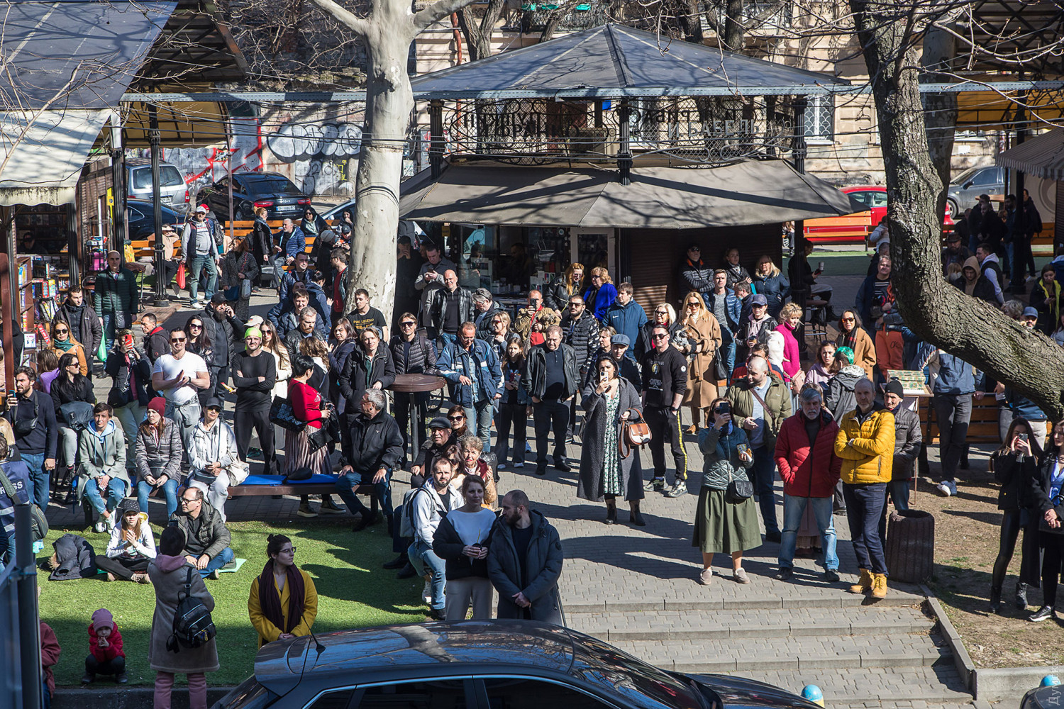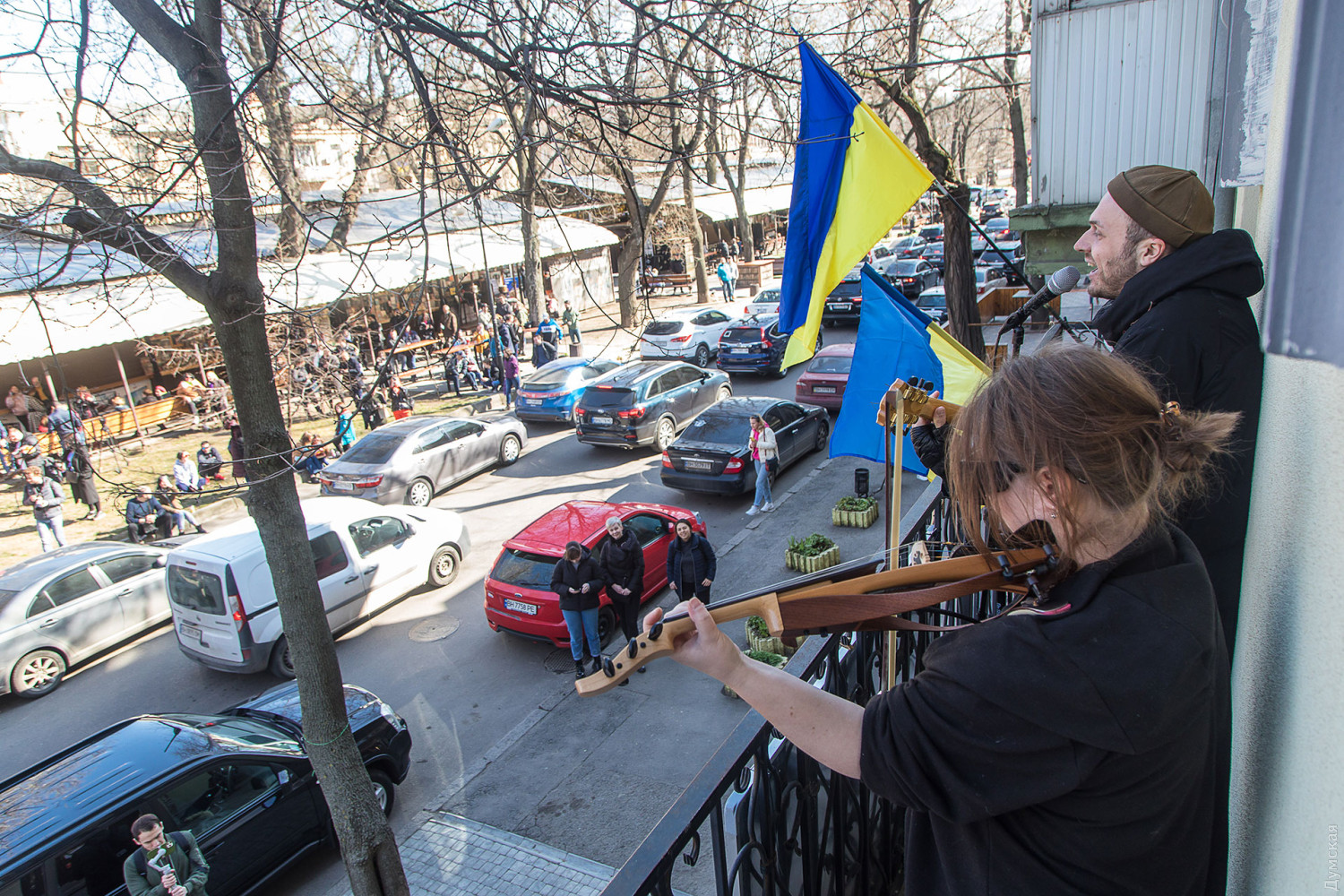 Джаз на балконе: возле легендарной «Книжки»: одесские музыканты играли и пели прямо из окон театраНеобычный концерт прошел вчера днем возле легендарного одесского рынка «Книжка», что на Александровском проспекте. Сценой для выступления одесских музыкантов стали балконы театра «Перрон №7», в доме под 16-м номером, а зрительным залом – собственно книжный базар, который с трудом смог вместить всех желающих насладиться выступлением. С балкона звучали джазовые и блюзовые стандарты от трио Ярослава Трофимова и дуэта Авелины Цеховаловой и Александра Ковалева, сатирический фольклор и современный городской романс от Александры Лосевой и Романа Капитонова. Джазовой обработке подверглись такие известные одесские хиты, как «У Черного моря», «Шаланды полные кефали» и «Ах, Одесса – жемчужина у моря». Последний, к слову, исполнялся на государственном языке, что с восторгом восприняла собравшаяся публика. Как рассказал «Думской» создатель «Перрона №7», музыкант, певец, режиссер Ярослав Трофимов – это уже второй подобный концерт. «Мы переехали в это здание в сентябре прошлого года, — рассказывает Ярослав. – Из-за войны пришлось отменить пять спектаклей, билеты на которые были уже проданы. Большинство людей, купивших билеты, согласились, чтобы мы от их лица перевели эти деньги на помощь ВСУ. Теперь, когда наш тыловой город начинает понемногу оживать, мы решили поднять настроение и боевой дух одесситов музыкой». Концерт совпал с очередной воздушной тревогой, что, впрочем, не испугало завсегдатаев «Книжки», которая за долгие годы своей работы привыкла к разным налетам, хоть и не воздушным. Исполнители радовали одесситов своим творчеством почти два часа. Отметим, что собранные по системе free-donate средства пойдут в специальный фонд, который помогает артистам, оставшимся без средств к существованию. P.S. 27 марта в 14:00 там же, на Александровском проспекте, 16 пройдут театральные чтения. Профессиональные актеры прочтут произведения Леся Подервянского, Михаила Жванецкого, Владимира Жаботинского, Остапа Вишни и других. Автор — Александр Гиманов СМЕРТЬ РОСІЙСЬКИМ ОКУПАНТАМ! Помітили помилку? Виділяйте слова з помилкою та натискайте control-enter |