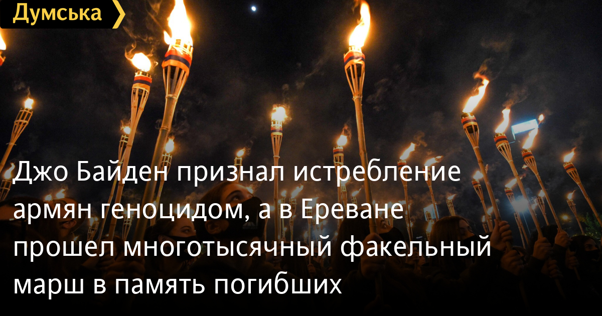 Джо Байден признал истребление армян геноцидом, а в Ереване прошел многотысячный факельный марш в память погибшихПрезидент США Джо Байден признал массовые убийства армян, совершенные более века назад, геноцидом и продемонстрировал готовность испытать отношения с Турцией, которая давно является ключевым региональным союзником Соединенных Штатов и важным партнером по НАТО. Как сообщает The New York Times, заявление президента США показало приверженность его администрации соблюдению прав человека, что составляет основу ее внешней политики. «Каждый год в этот день мы вспоминаем жизни всех тех, кто погиб во время геноцида армян в Османской империи, и вновь обязуемся не допустить повторения подобных злодеяний. И мы помним это, чтобы оставаться бдительными против разъедающего влияния ненависти во всех ее формах», — отметил Байден в заявлении, выпущенном по случаю 106-й годовщины со дня начала жестокой кампании истребления армян, в результате которой погибло более полутора миллиона человек. Выступление Байдена говорит о разрыве с его предшественниками, которые не хотели разгневать Турцию, имеющую стратегическое значение, и опасались подталкивать свое руководство к американским противникам — таким как Россия и Иран. Правительство Турции, а также правозащитники и этнические армяне сдержанно отреагировали на заявление президента США, назвав этот шаг в значительной степени символическим. Между тем 23 апреля вечером в Ереване в память о жертвах геноцида десять тысяч человек прошли траурным маршем, держа в руках факелы, свечи и флаги. Марш начался от площади Свободы в центре столицы Армении и продолжался до холма Цицернакаберд к мемориалу жертв геноцида, где участники возложили цветы к вечному огню. В полночь национальный филармонический оркестр исполнил «Реквием» Джузеппе Верди. Накануне дня памяти жертв геноцида власти страны призвали участников мемориальных акций по возможности соблюдать социальную дистанцию и быть в масках. СМЕРТЬ РОССИЙСКИМ ОККУПАНТАМ! Заметили ошибку? Выделяйте слова с ошибкой и нажимайте control-enter |