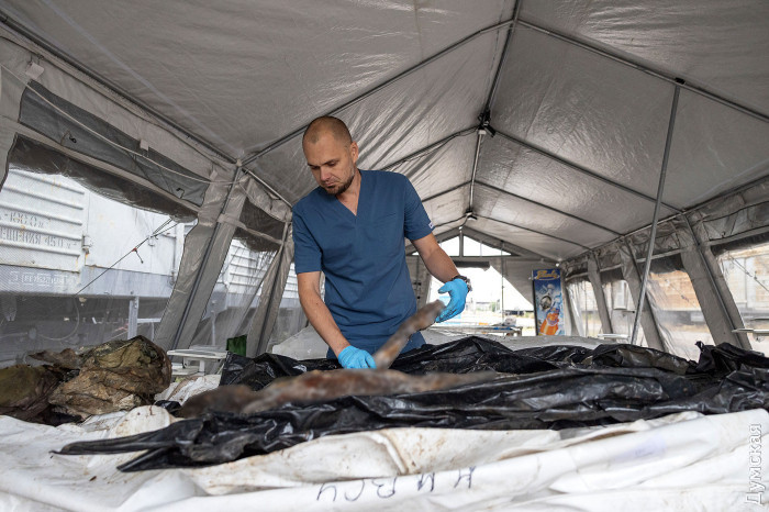 Мабуть, найстрашніше на війні для кожного українця, чия близька людина сьогодні на фронті – це очікування. Очікування дзвінка: зі шпиталю, з координаційного штабу з питань військовополонених, із військової частини. Очікування, яке може тягтися місяцями – коли рідні не знають, їхній син, чоловік, брат, загинув зник, у полоні, чи… Україна робить все можливе, щоб у рамках обміну повернути додому не лише полонених героїв, а й загиблих. Встановити особистість воїна, чиї останки передають росіяни, – завдання не з простих: іноді мішок з тілом – один на трьох, а іноді всередині – граната. Кореспондент «Думської» відвідав єдиний в Україні польовий морг, де відбирають матеріали для ДНК-експертизи, коли інші методи ідентифікації особи вже, на жаль, не є дієвими. Залізнична станція недалеко від Одеси. У тупику припарковані рефрижераторні вагони вкриті іржею. З неприємним, різким скрипом двері холодильника від'їжджають убік, оголюючи крижані нутрощі вагона. Температура в рефрижераторах тримається на рівні -10°C. Необхідне суворе дотримання режиму і безперебійне електропостачання. Білі пакети з останками воїнів — немов снігові замети. У кожному — тіло українського героя, а іноді й кілька. Скорботна робота по встановленню особи героїв починається тут. Одягнені в захисні костюми судмедексперти обережно опускають білий мішок на медичні ноші і везуть в намет. Всередині — п'ять секційних столів, освітлення, обладнання. Це польовий морг, організований ДСУ «Одеське обласне бюро судово-медичної експертизи». Тут відбирають біологічний матеріал, щоб повернути імена полеглим героям. За словами Тетяни Папіж, керівниці бюро, ідея польового моргу з'явилася тоді, коли кількість тіл, переданих росіянами, перевищила тисячу — колишні потужності вже не справлялися. «Одеса прийняла вже одинадцять репатріацій — близько 2800 тіл, — розповідає директор бюро. — Перша репатріація, 70 загиблих, відбулася 1 травня 2024 року. Цього літа, на початку червня, відбувся великий обмін, і в Україну повернулися останки шести тисяч осіб. На Одесу розподілили найбільшу частину — 1600 загиблих. Ми тоді їх опрацювали за 18 днів. В середньому за робочий день вдається опрацювати близько ста пакетів». За її словами, ніхто в країні не був готовий до такої кількості загиблих, до самої війни. «Необхідна велика матеріально-технічна база: секційні столи, пилки, величезна кількість витратних матеріалів — рукавичок, дезінфікуючих засобів, трупних мішків. Біотуалети, кабінки для переодягання Це був серйозний виклик для нас», — згадує Тетяна. Коли прибуває поїзд з новою репатріацією, тут, у польовому морзі, працюють десятки фахівців: рятувальники, лаборанти, судмедексперти, слідчі, криміналісти і навіть вибухотехніки. Сьогодні необроблених тіл не залишилося — близько семисот воїнів очікують завершення генетичного аналізу. Тому на локації всього троє лікарів-судмедекспертів: вони повторно відбирають матеріал у одного із загиблих. Невідомий поки воїн, тіло якого оглядає Олександр Януков, згідно з написом на невеликому шильдику, загинув смертю хоробрих в районі Работіно Запорізької області. «Іноді в мішку — кілька тіл, — розповідає Олександр. — Максимум, що ми бачили — чотири загиблих в одному мішку. Все перемішано. Росіяни просто збирають фрагменти і скидають разом. Іноді доводиться годи